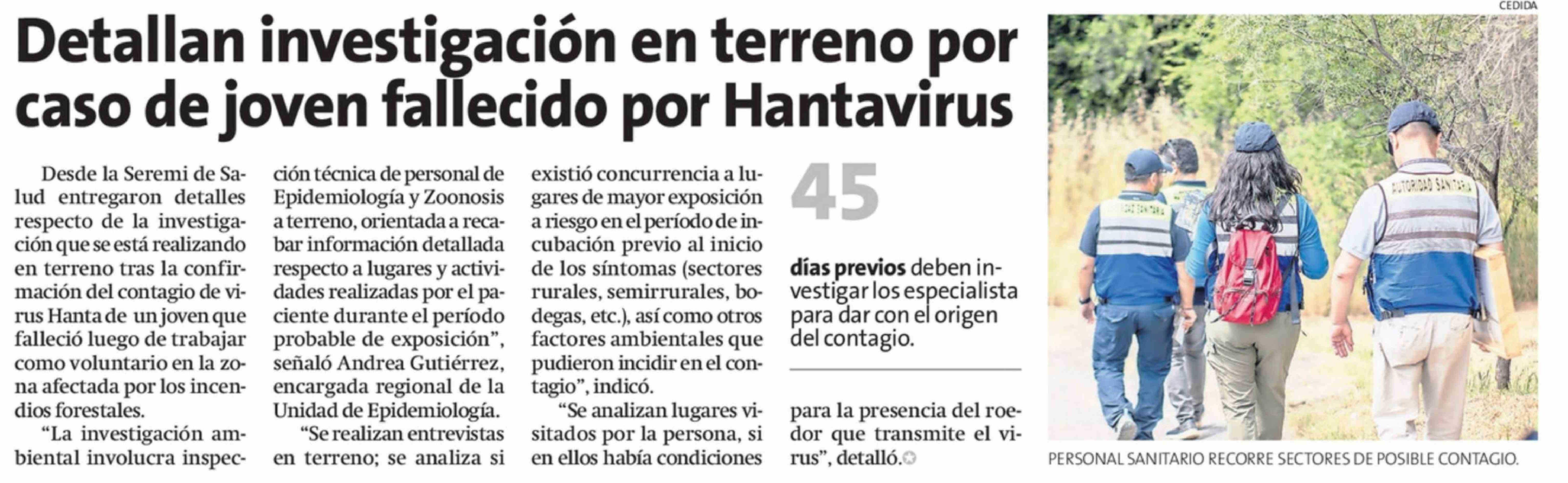 Detallan investigación en terreno por caso de joven fallecido por Hantavirus