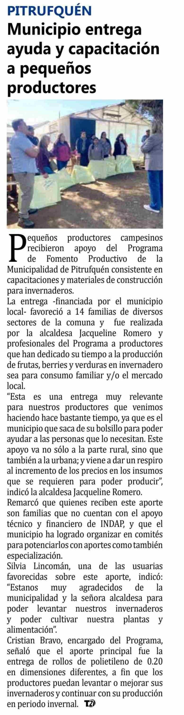 Municipio entrega ayuda y capacitación a pequeños productores