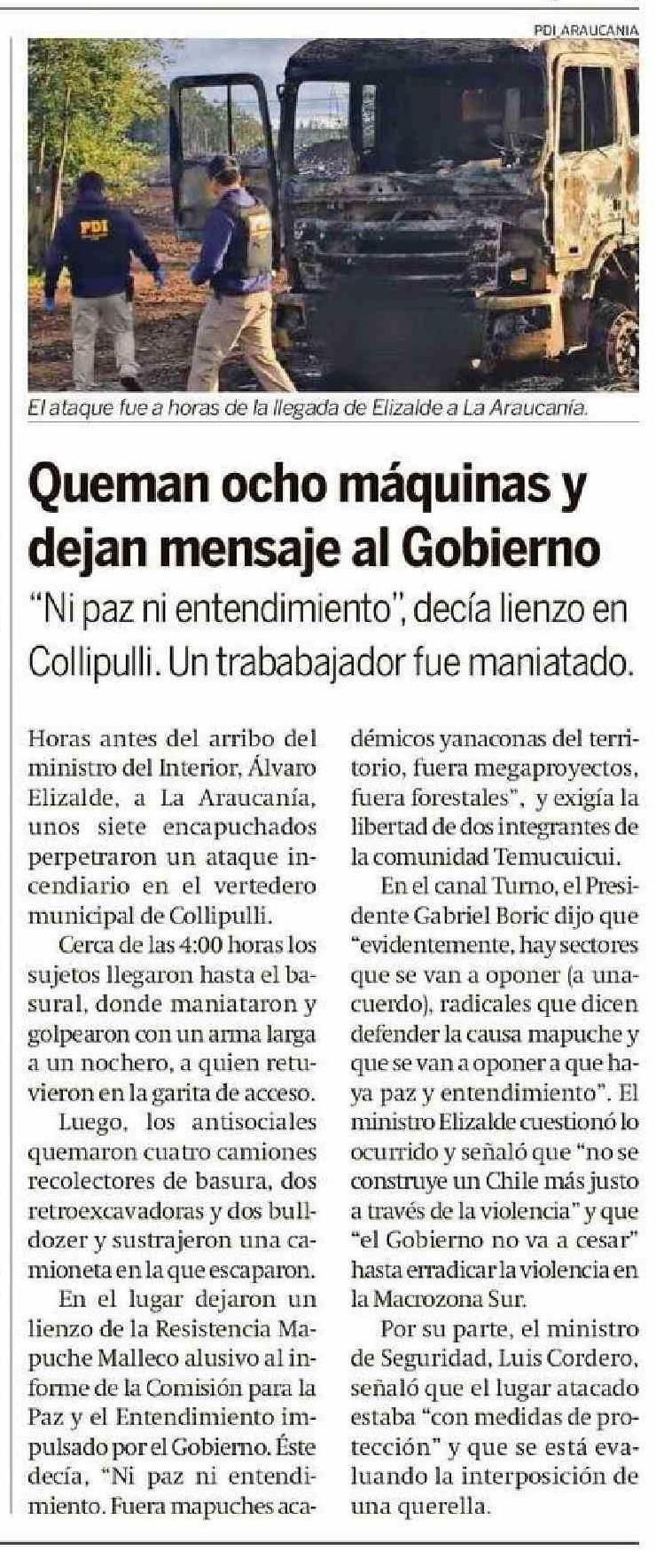 Queman ocho máquinas y dejan mensaje al Gobierno