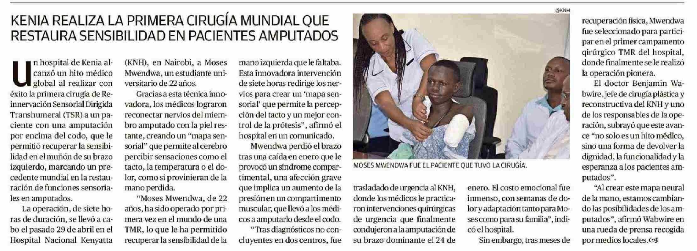 KENIA REALIZA LA PRIMERA CIRUGÍA MUNDIAL QUE RESTAURA SENSIBILIDAD EN PACIENTES AMPUTADOS