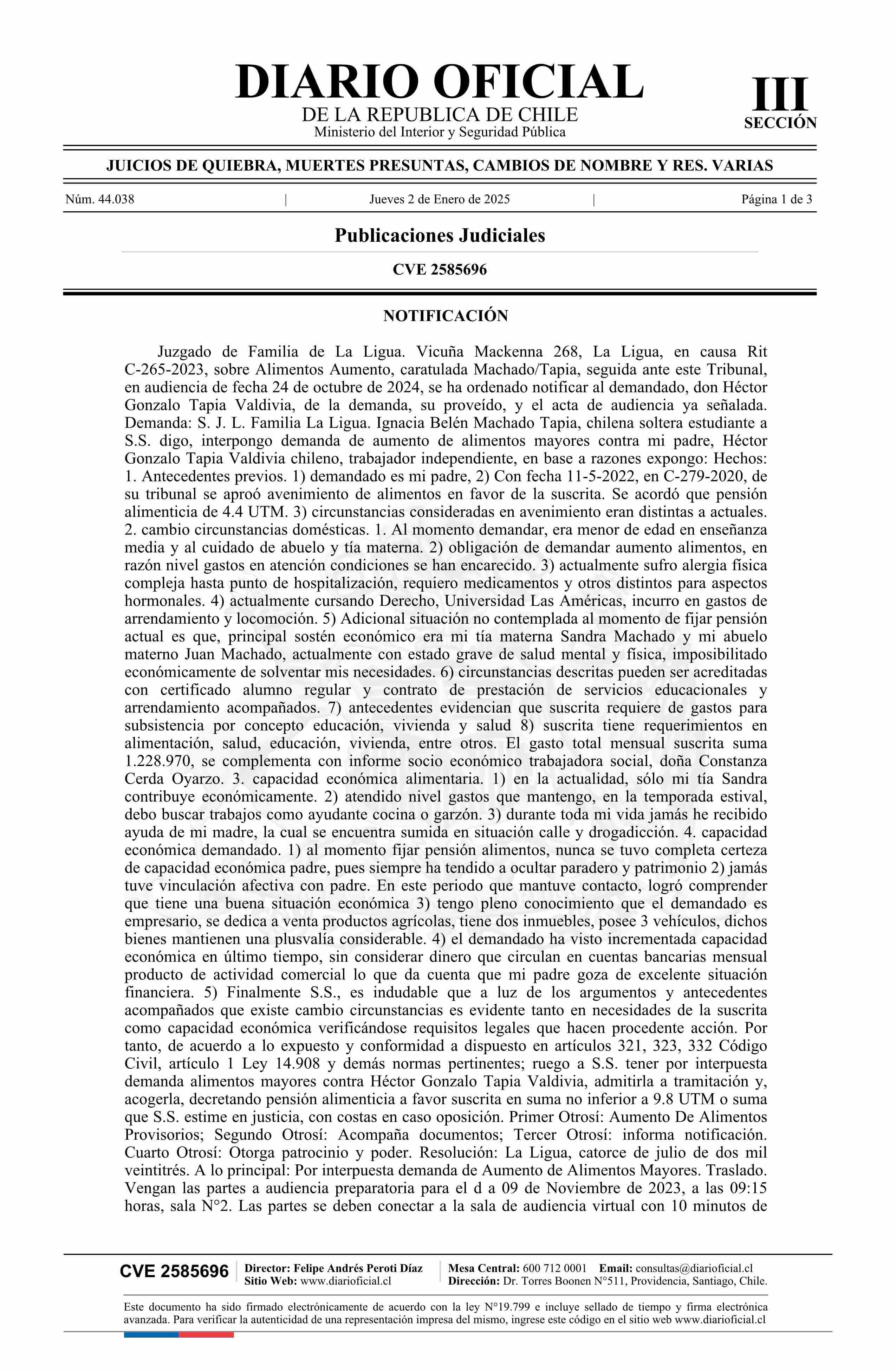 Diario Oficial Edición Electrónica (Diario Oficial de Chile - 3 Public. Judiciales)