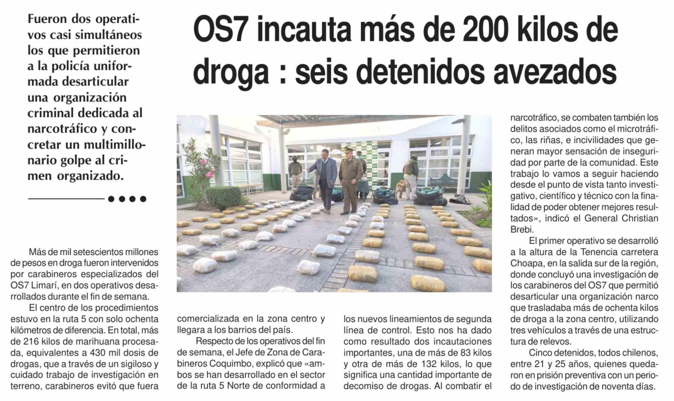 OS7 incauta más de 200 kilos de droga : seis detenidos avezados
