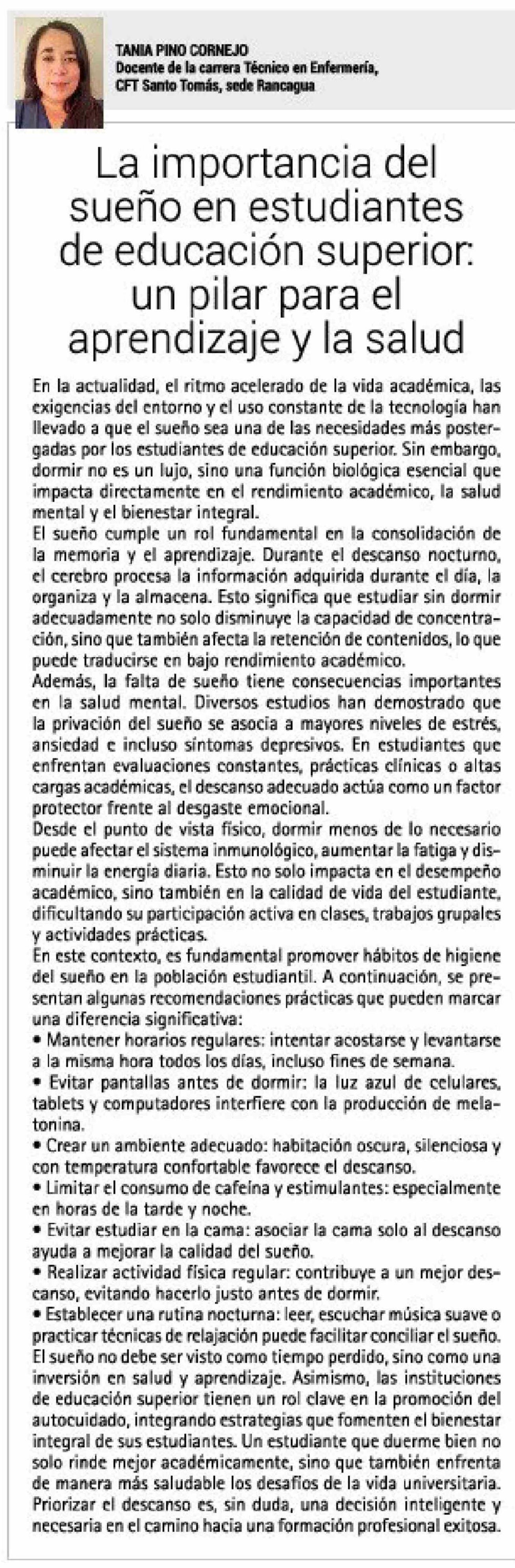 | Título: | Columnas de Opinión: La importancia del sueño en estudiantes de educación superior. un pilar para el aprendizaje y la salud |