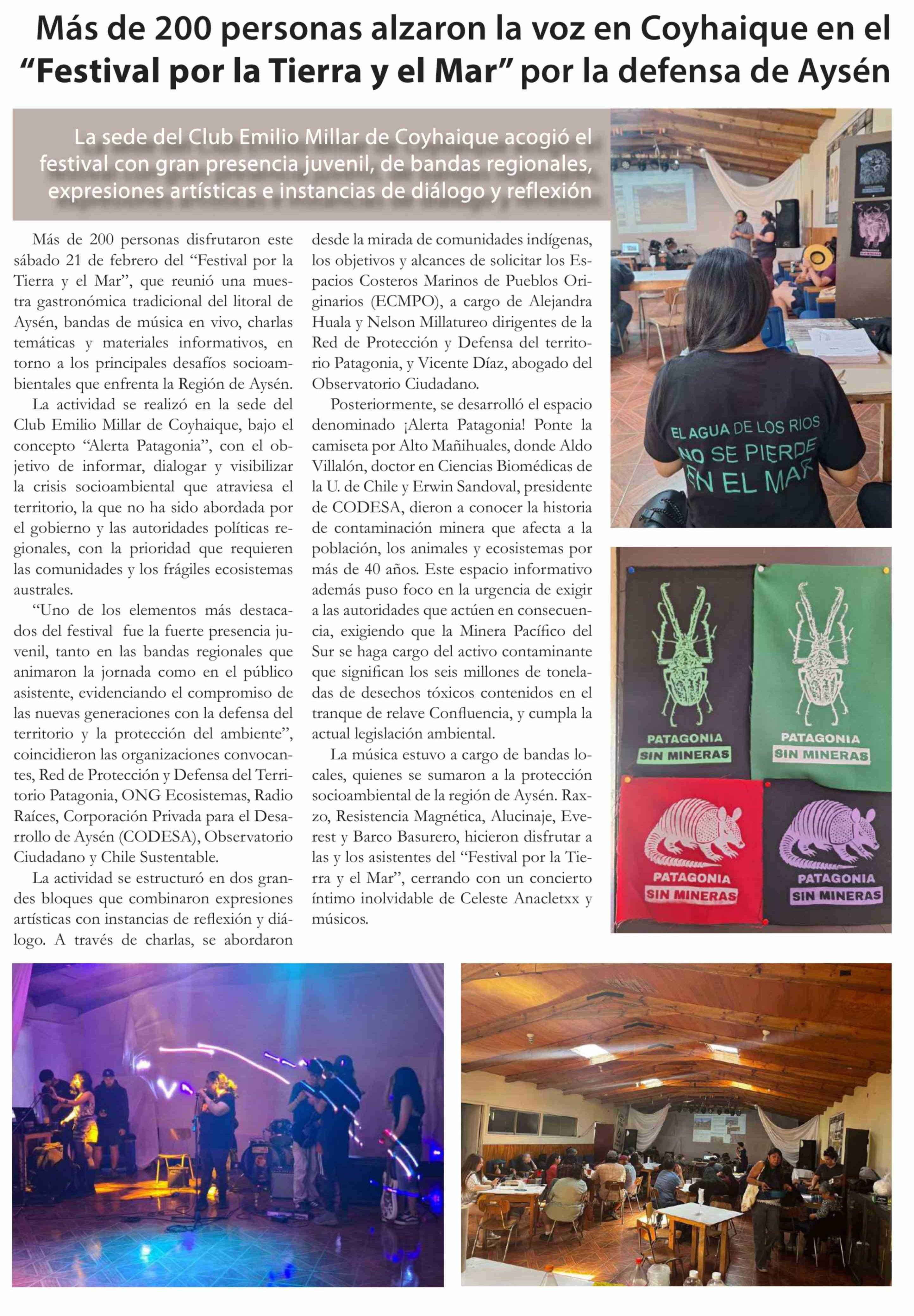Título: Más de 200 personas alzaron la voz en Coyhaique en el "Festival por la Tierra y el Mar" por la defensa de Aysén