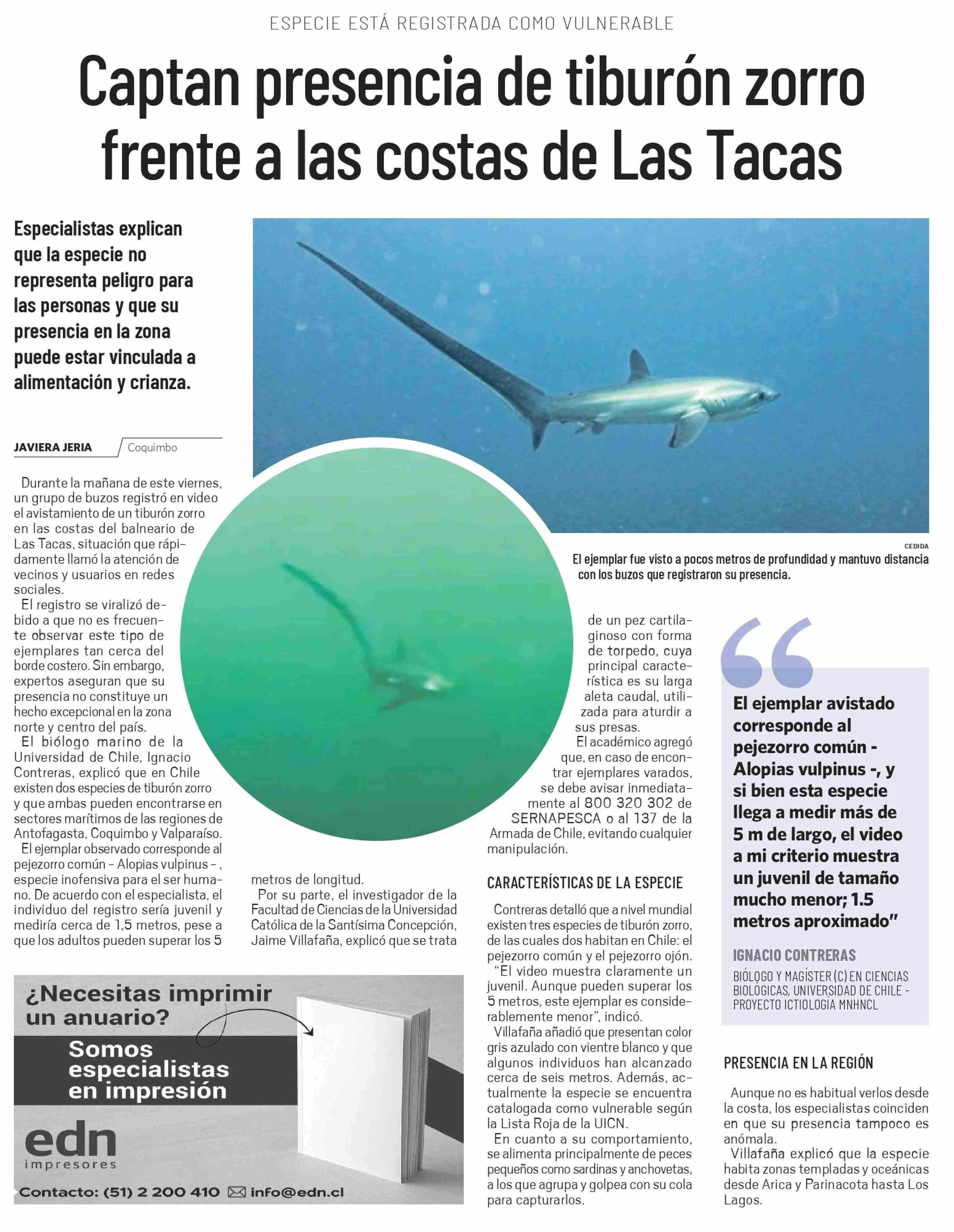 Captan presencia de tiburón zorro frente a las costas de Las Tacas