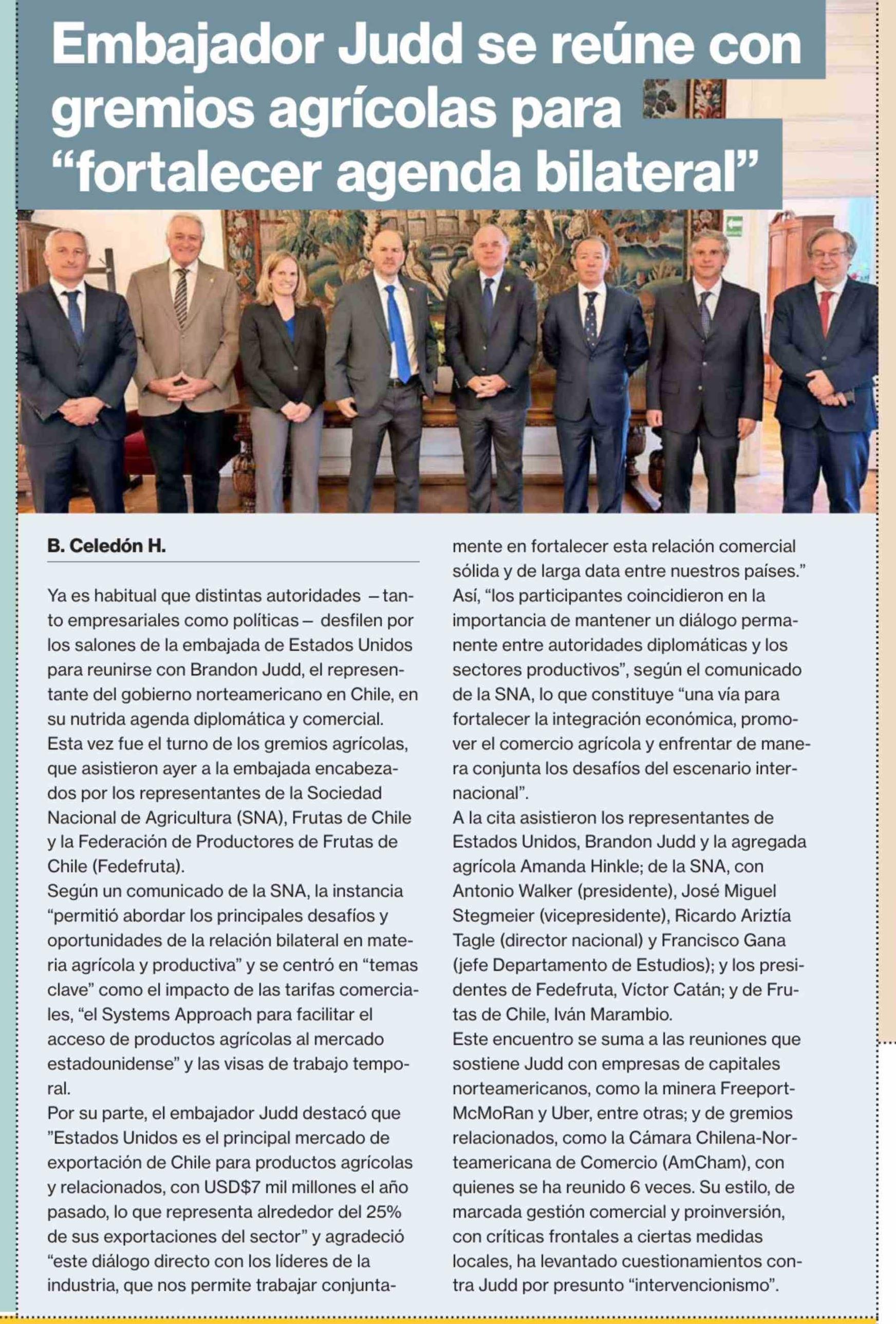 Embajador Judd se reúne con gremios agrícolas para "fortalecer agenda bilateral"