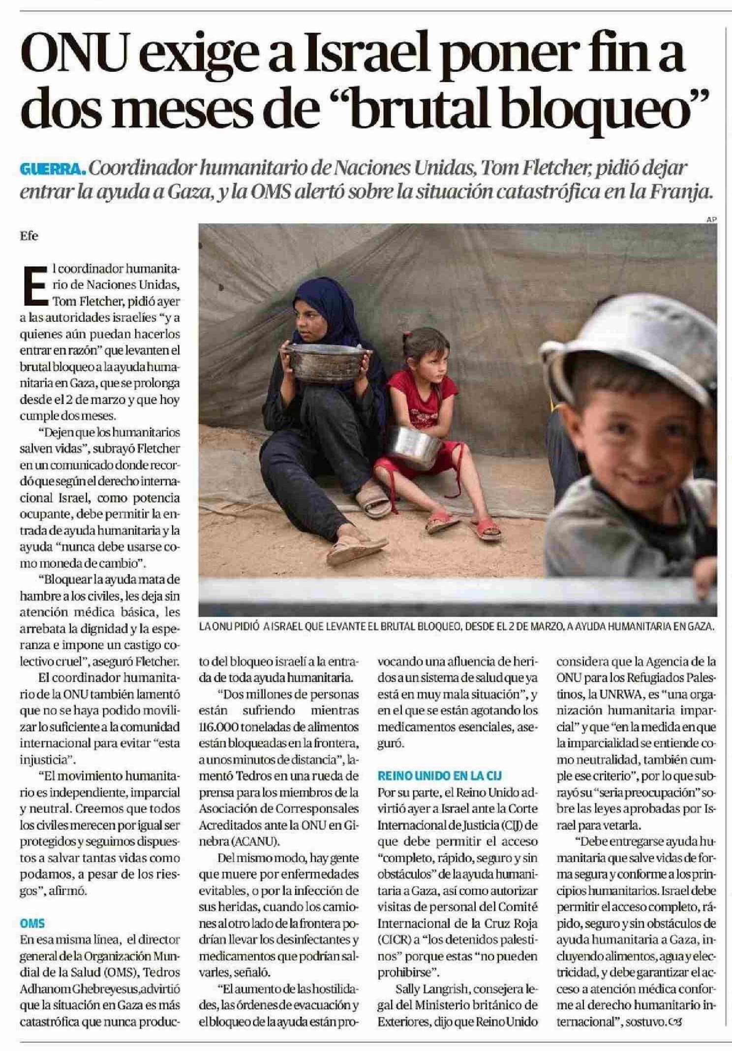 ONU exige a Israel poner fin a dos meses de “brutal bloqueo”