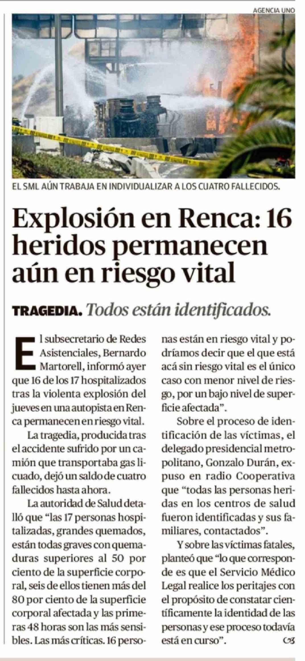 Explosión en Renca: 16 heridos permanecen aún en riesgo vital