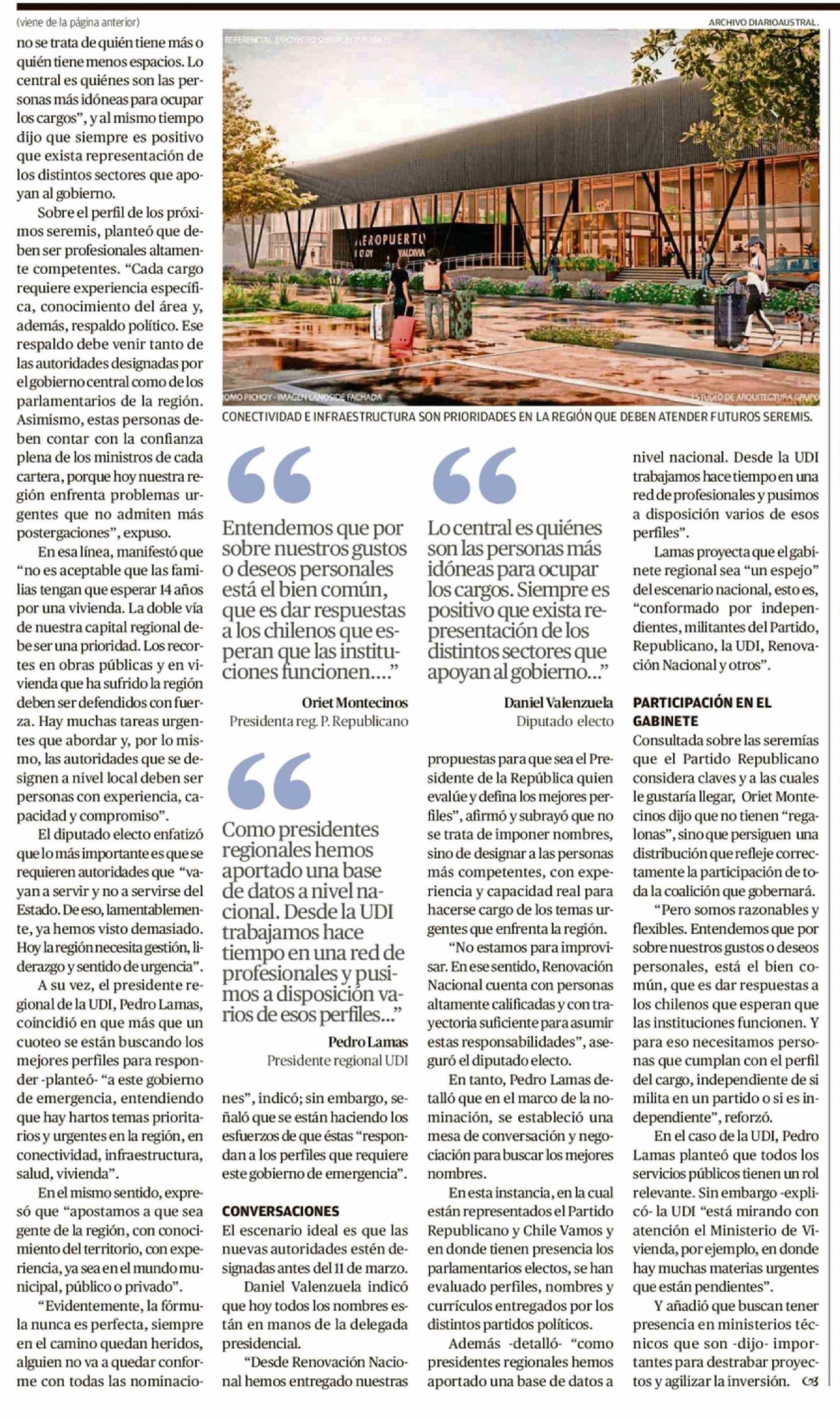 Apuntan a perfil técnico y político de los futuros seremis de Los Ríos