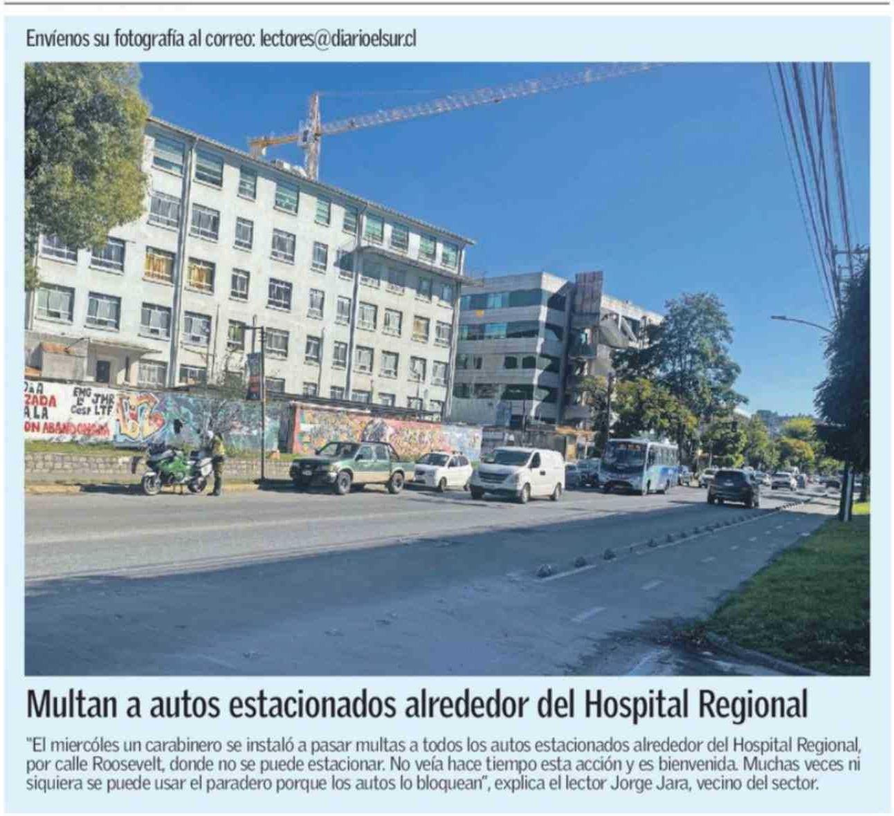 Multan a autos estacionados alrededor del Hospital Regional