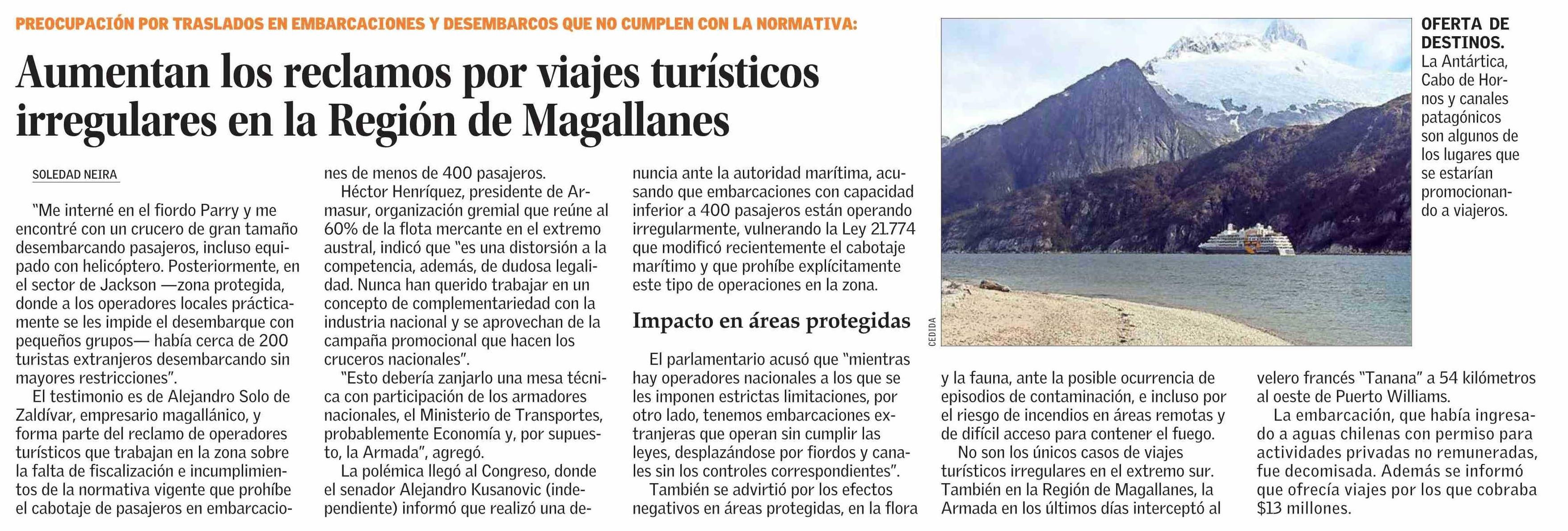 Título: Aumentan los reclamos por viajes turísticos irregulares en la Región de Magallanes