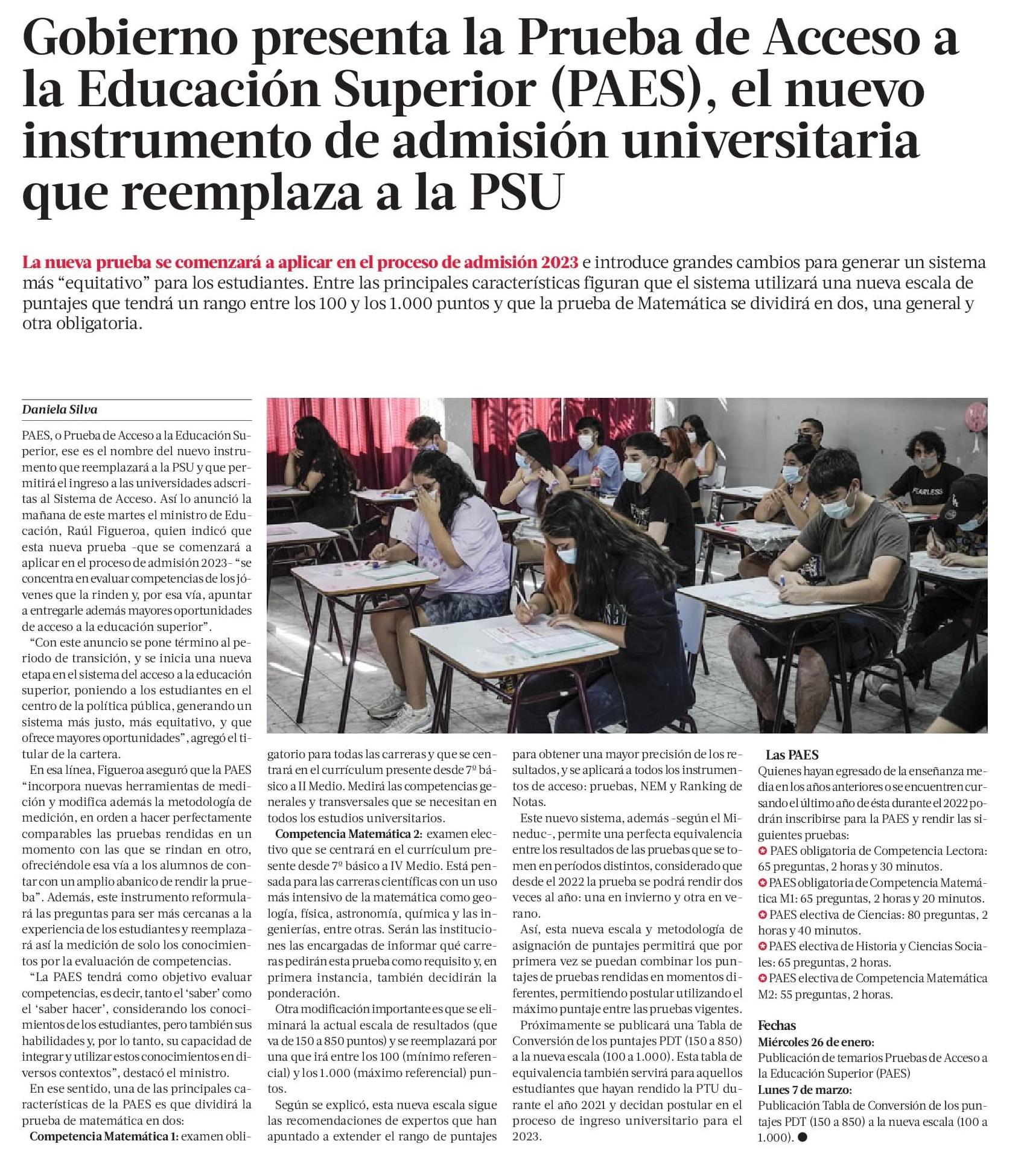 Gobierno presenta la Prueba de Acceso a la Educación Superior (PAES), el nuevo instrumento de admisión universitaria que reemplaza a la PSU