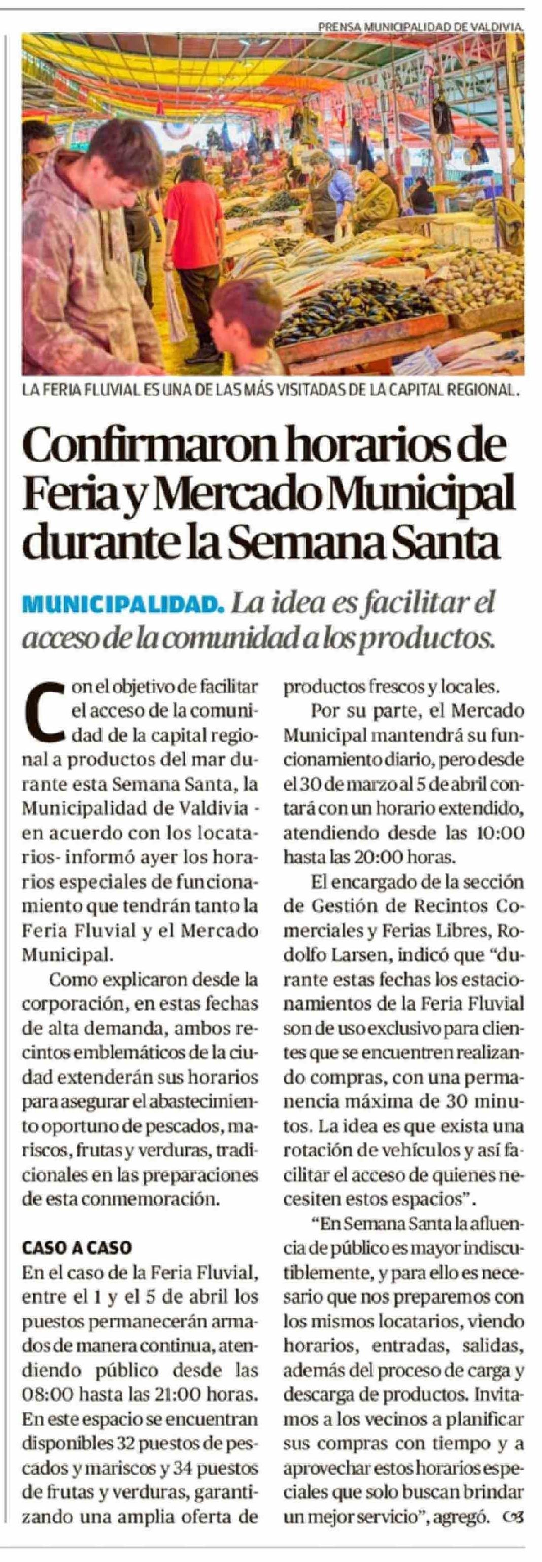 Confirmaron horarios de Feria y Mercado Municipal durante la Semana Santa