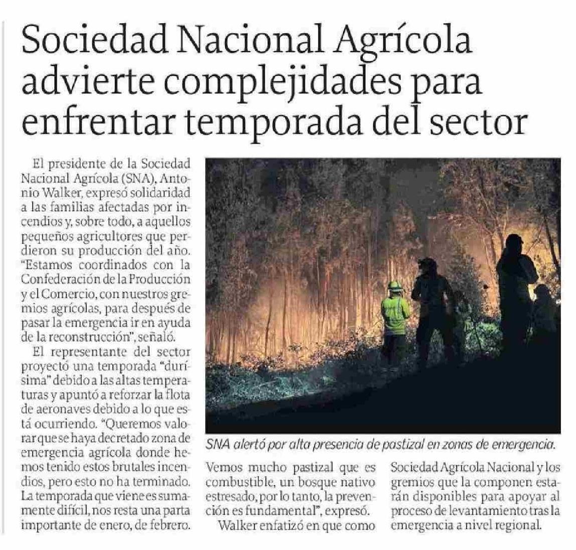 Sociedad Nacional Agrícola advierte complejidades para enfrentar temporada del sector