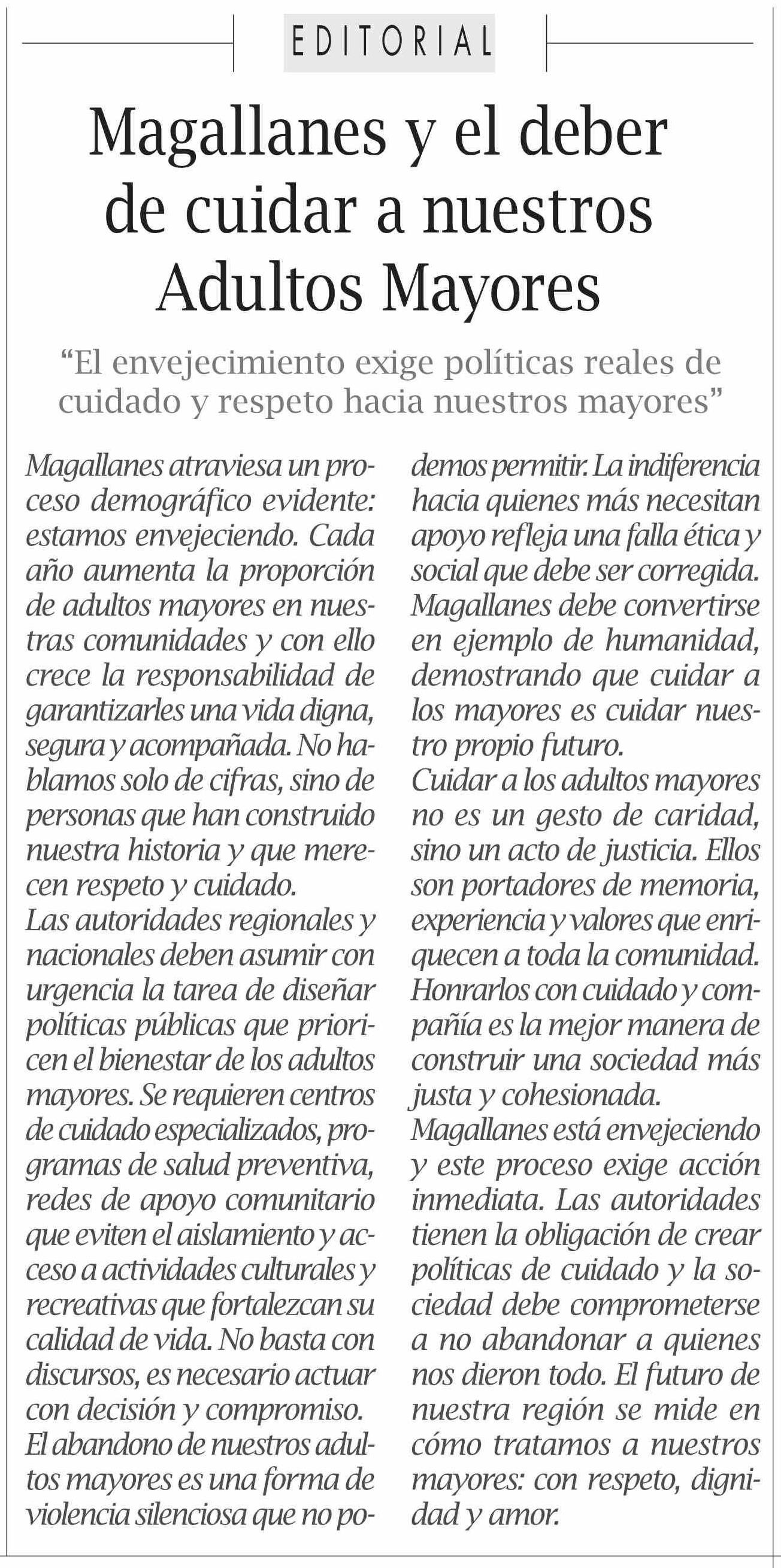 Editorial: Magallanes y el deber de cuidar a nuestros Adultos Mayores