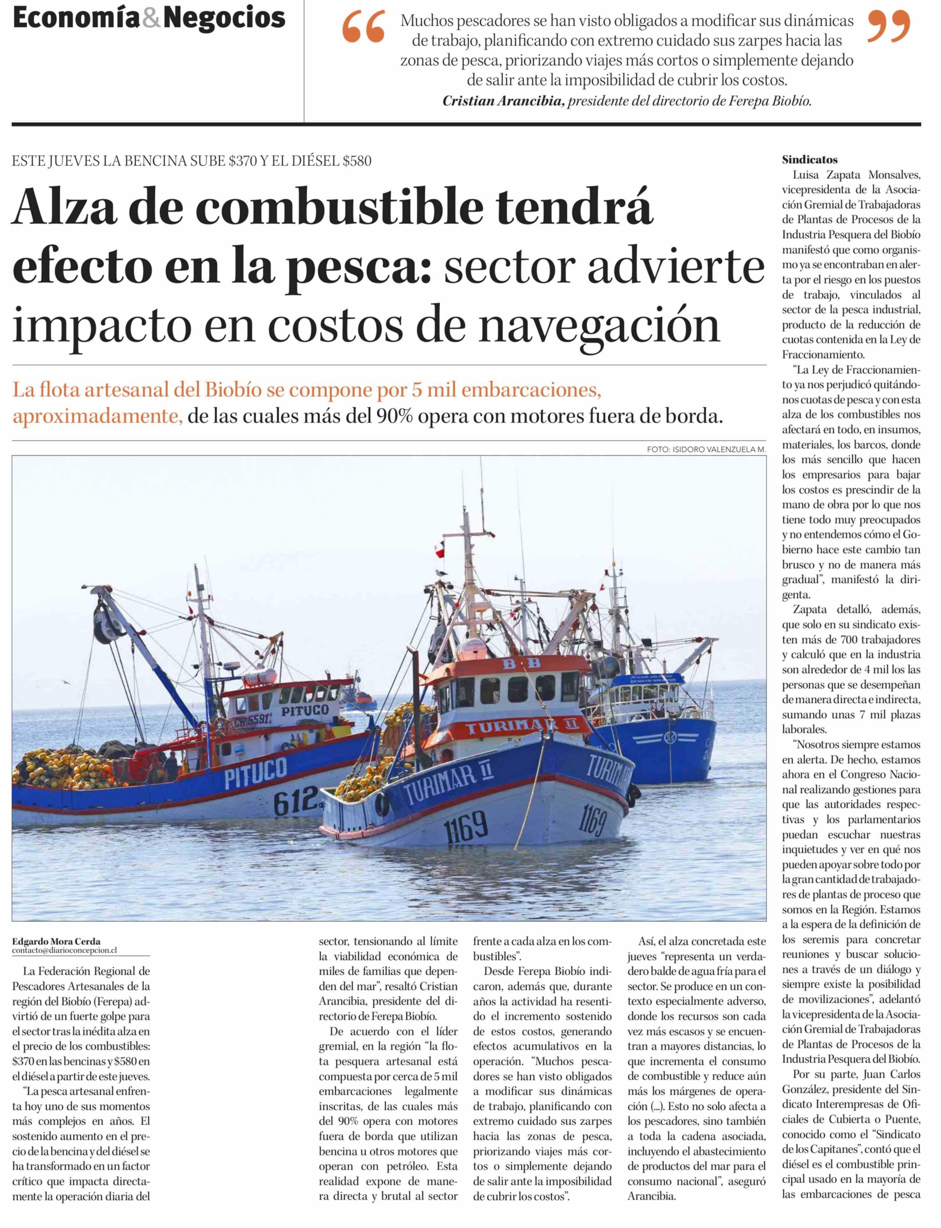 Alza de combustible tendrá efecto en la pesca: sector advierte impacto en costos de navegación