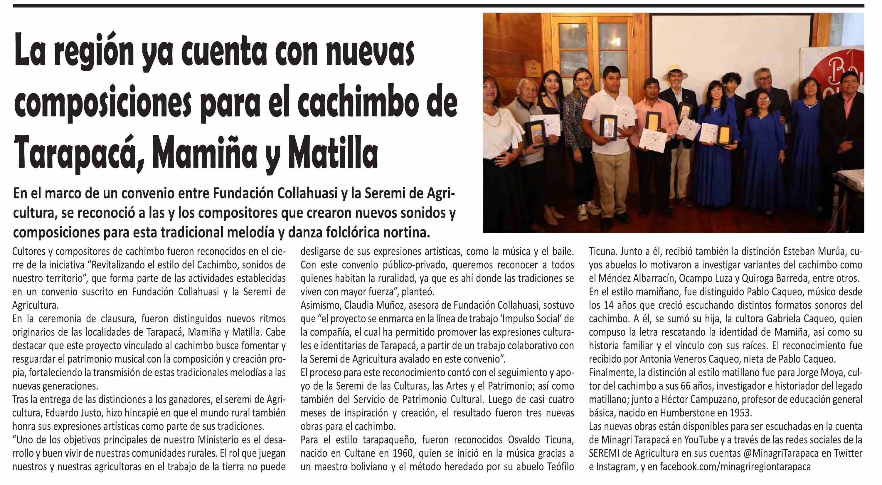 La región ya cuenta con nuevas composiciones para el cachimbo de Tarapacá, Mamiña y Matilla