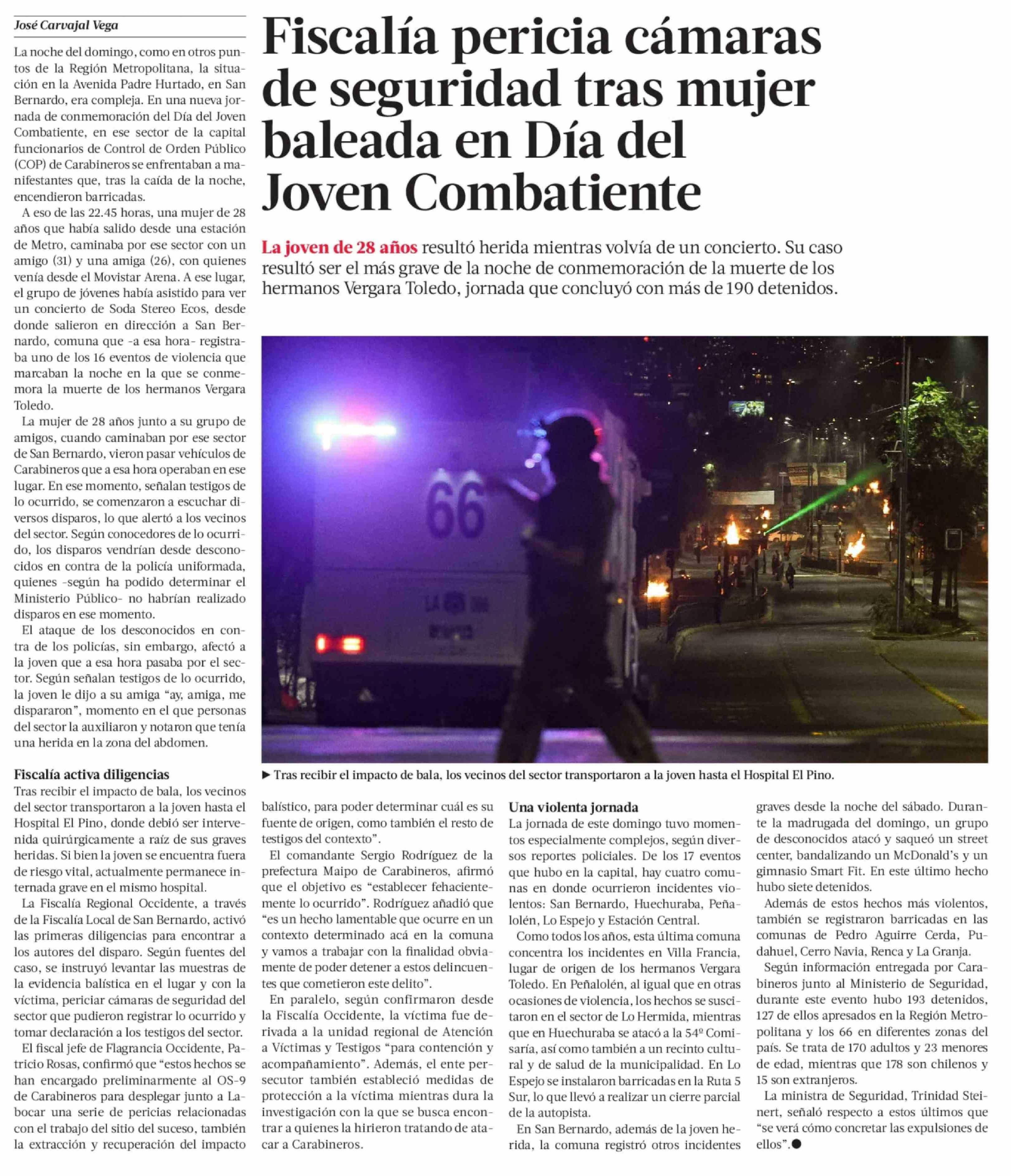 Fiscalía pericia cámaras de seguridad tras mujer baleada en Día del Joven Combatiente