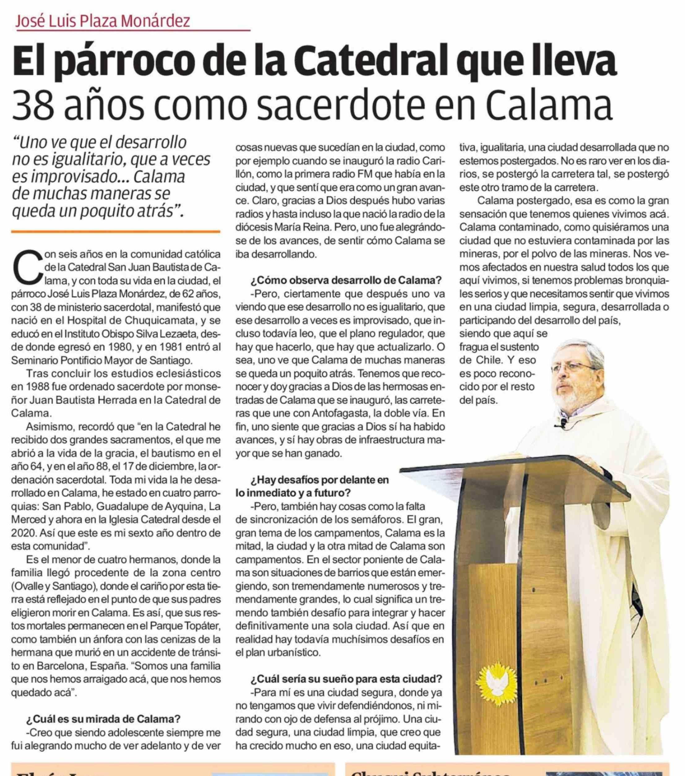 El párroco de la Catedral que lleva 38 años como sacerdote en Calama