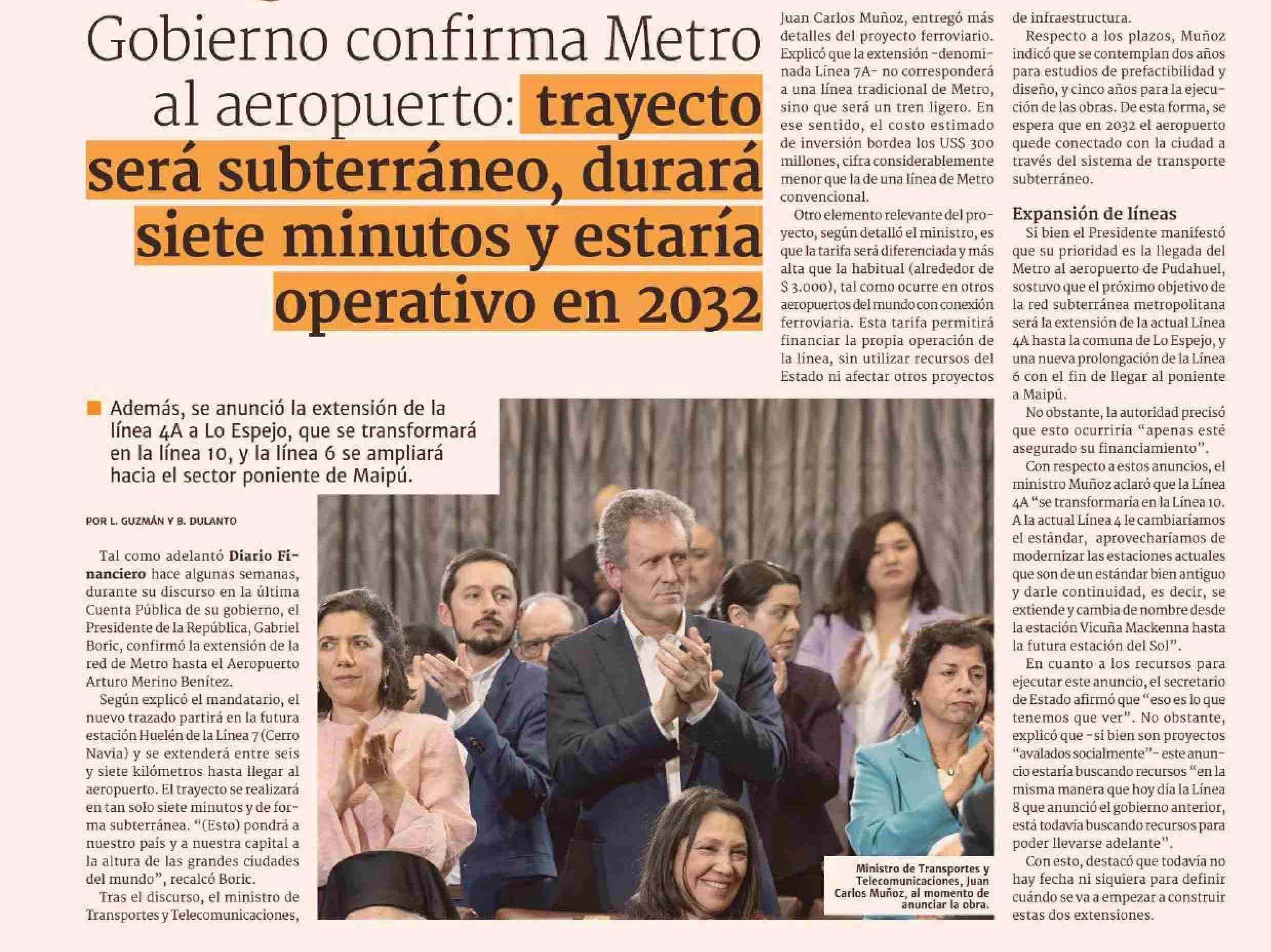 Gobierno confirma Metro al aeropuerto: trayecto será subterráneo, durará siete minutos y estaría operativo en 20232