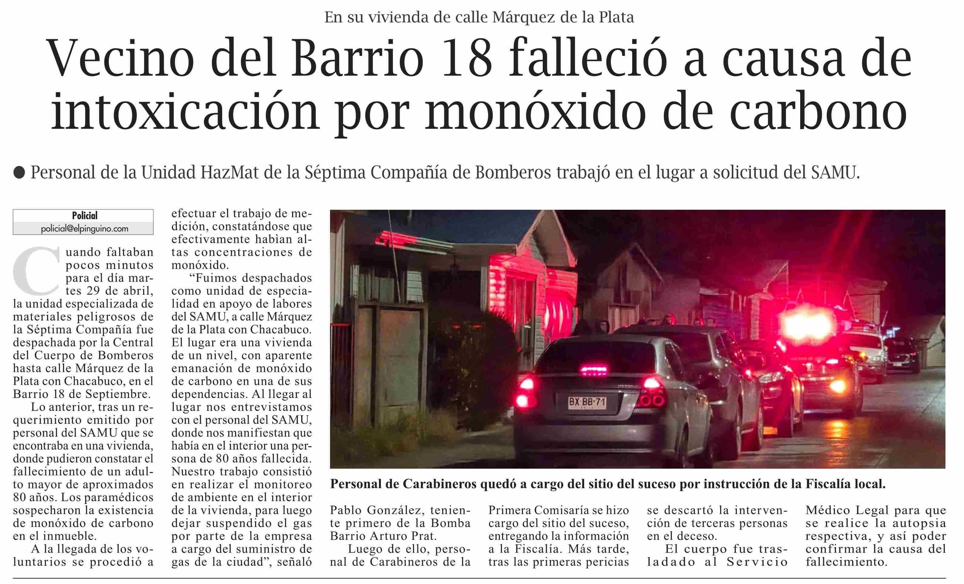 Vecino del Barrio 18 falleció a causa de intoxicación por monóxido de carbono
