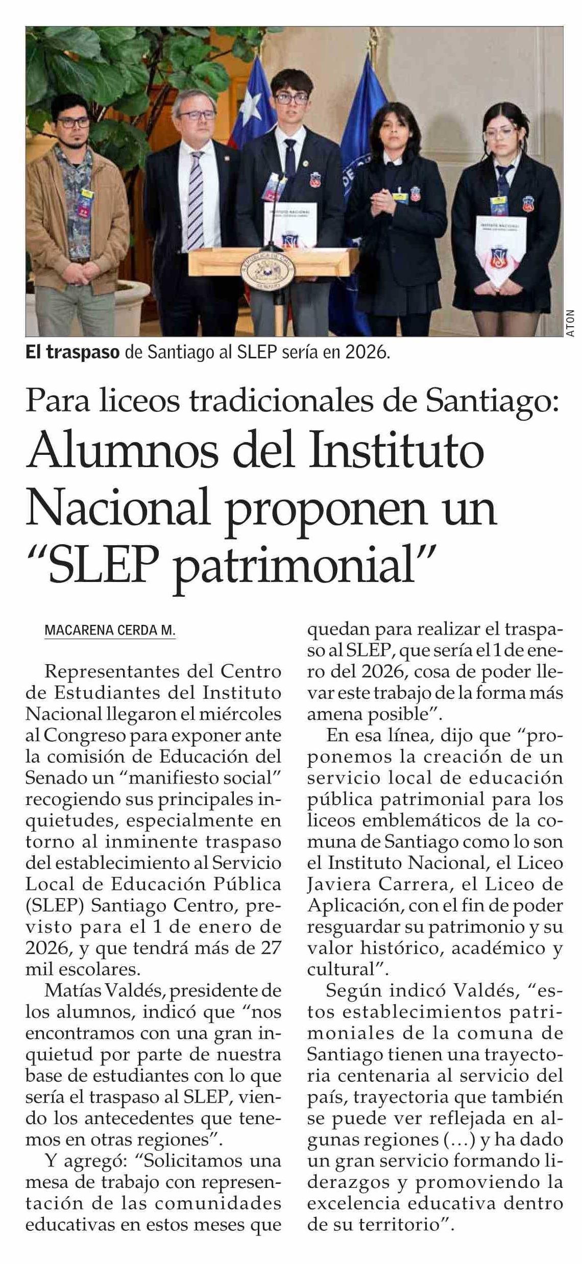Alumnos del Instituto Nacional proponen un “SLEP patrimonial”