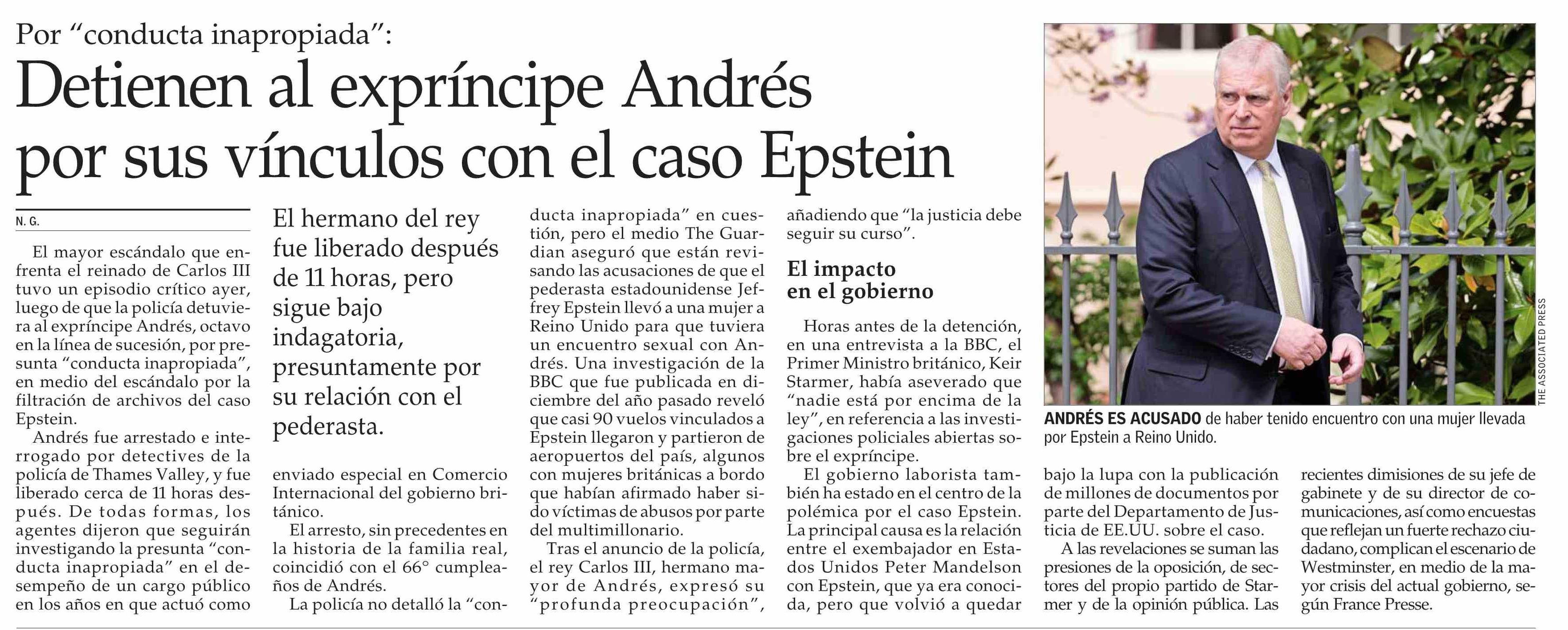 Detienen al expríncipe Andrés por sus vínculos con el caso Epstein