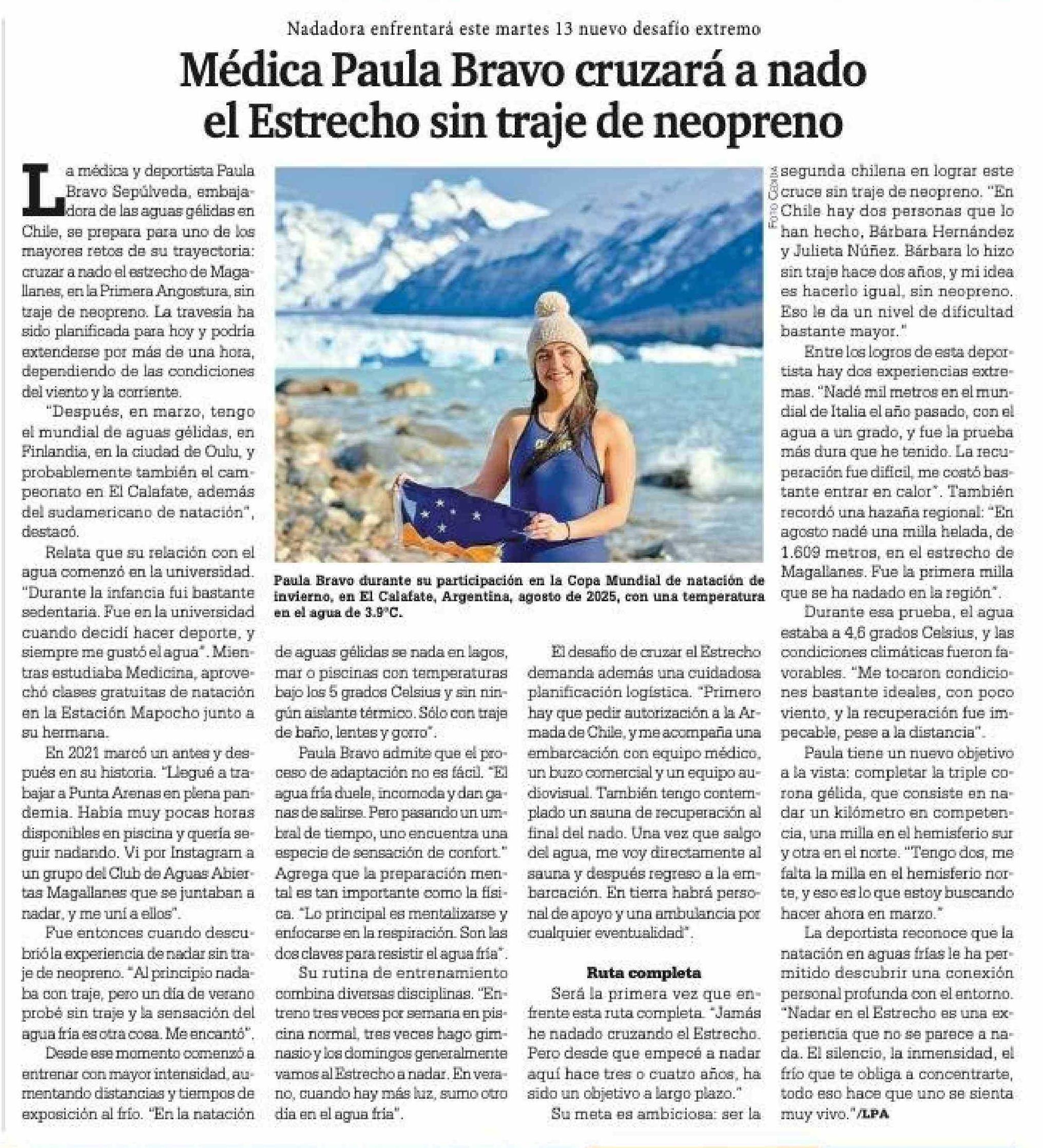 Médica Paula Bravo cruzará a nado el Estrecho sin traje de neopreno