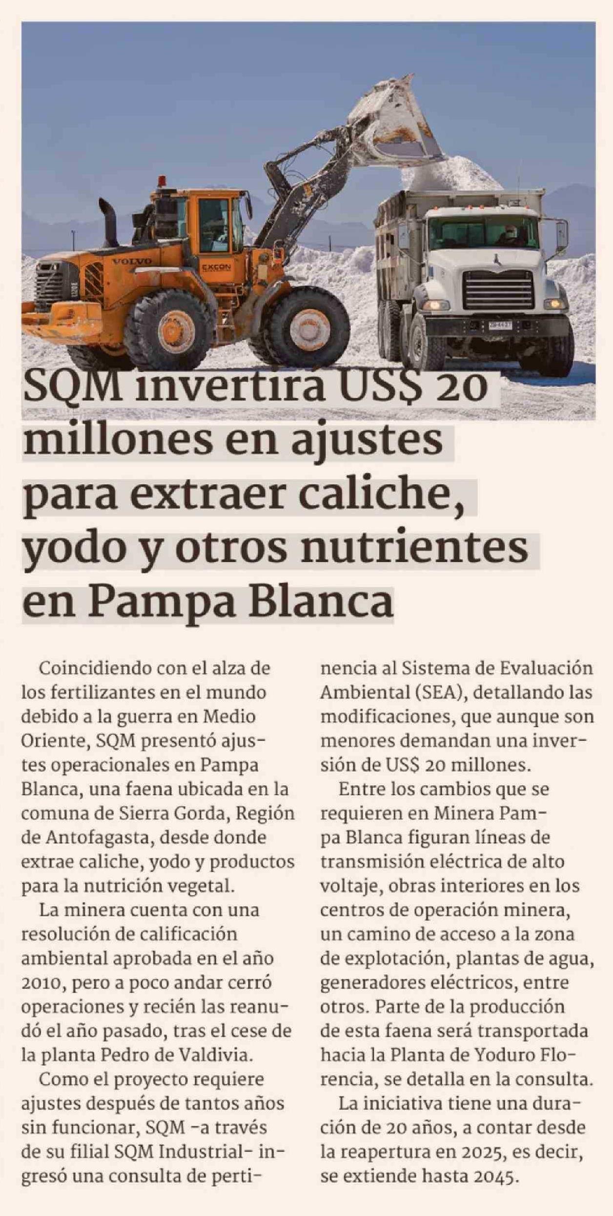 Millones en ajustes para extraer caliche, yodo y otros nutrientes en Pampa Blanca