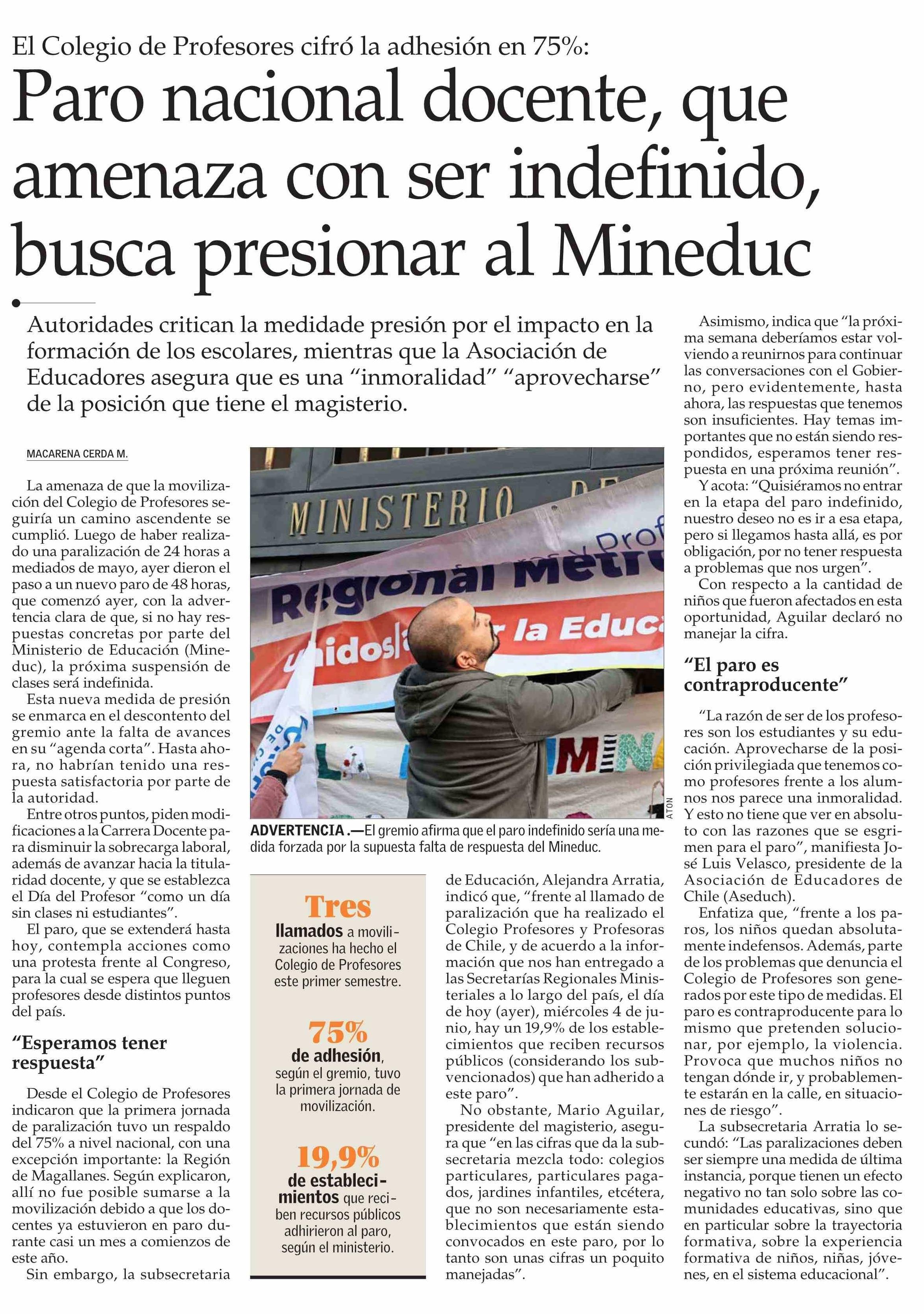 Paro nacional docente, que amenaza con ser indefinido, busca presionar al Mineduc