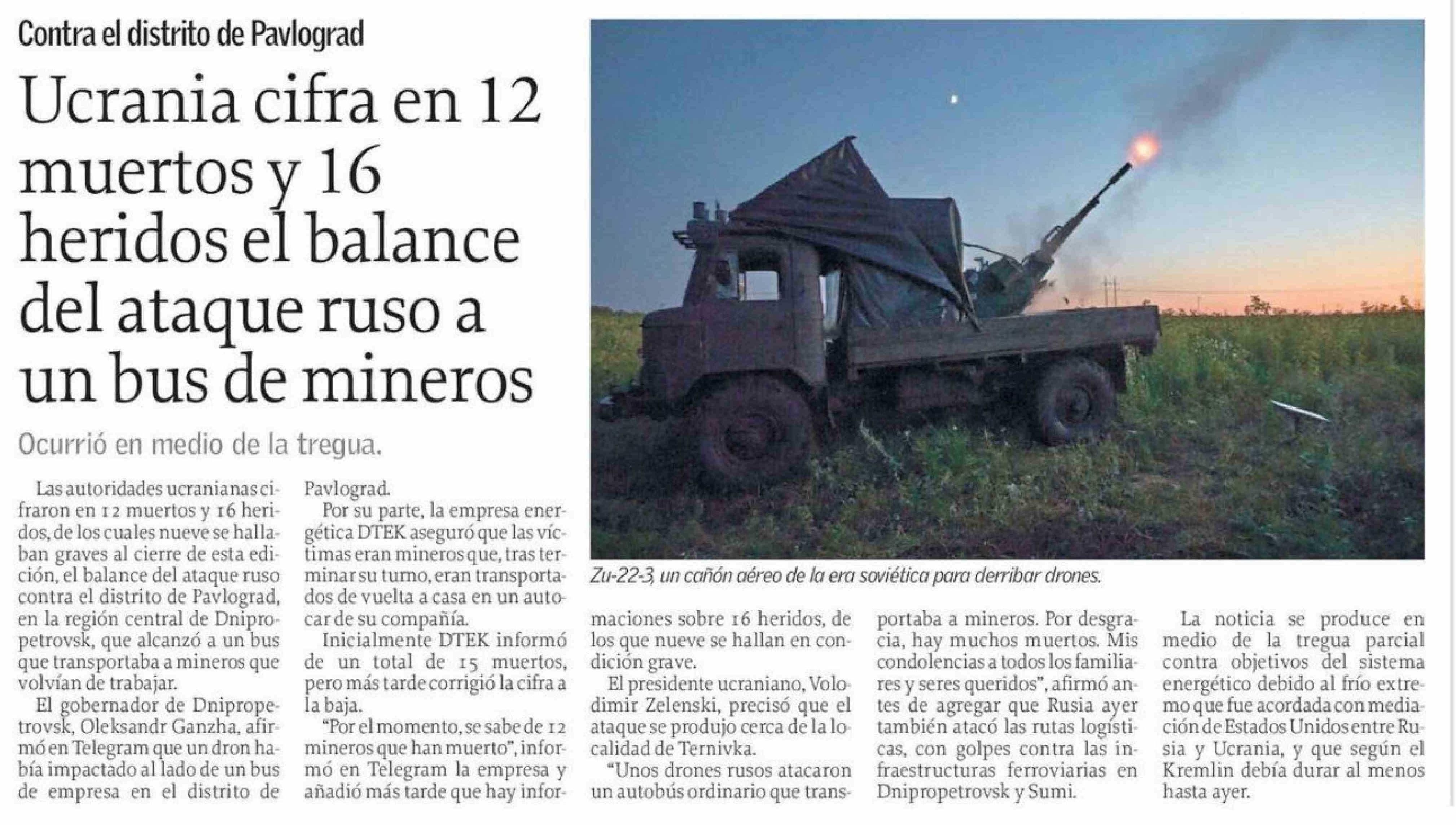 Ucrania cifra en 12 muertos y 16 heridos el balance del ataque ruso a un bus de mineros