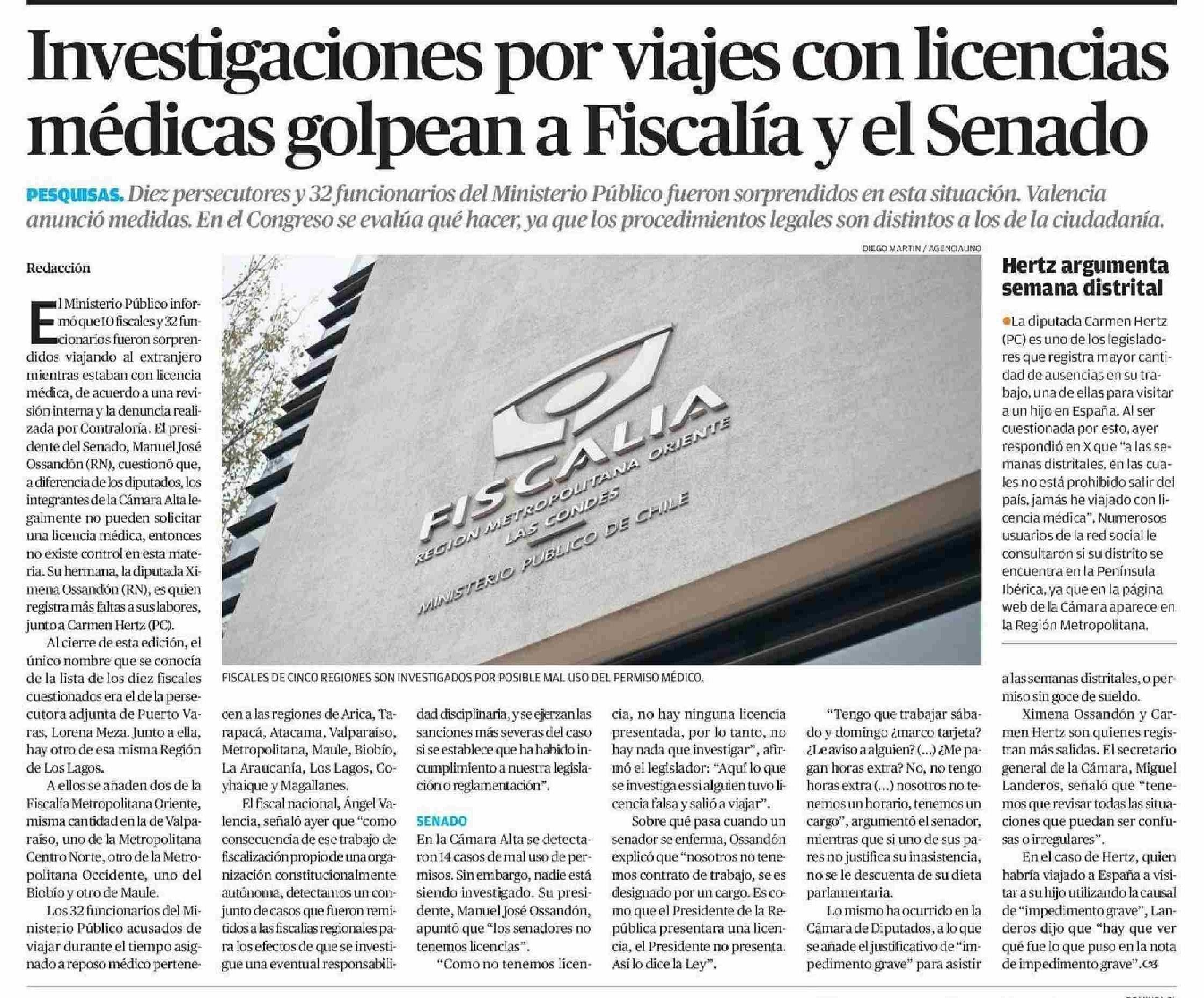 Investigaciones por viajes con licencias médicas golpean a Fiscalía y el Senado