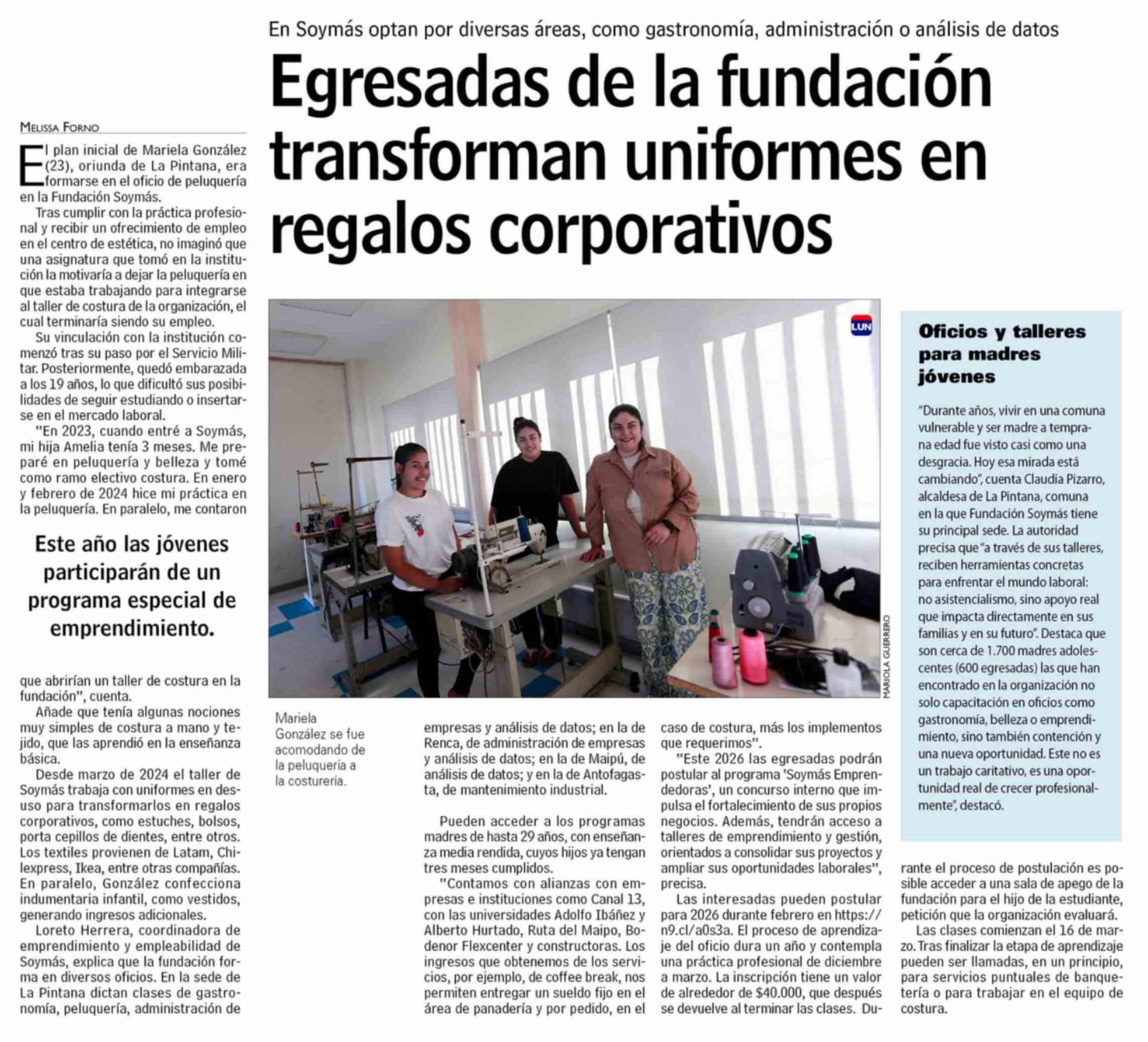 Egresadas de la fundación transforman uniformes en regalos corporativos
