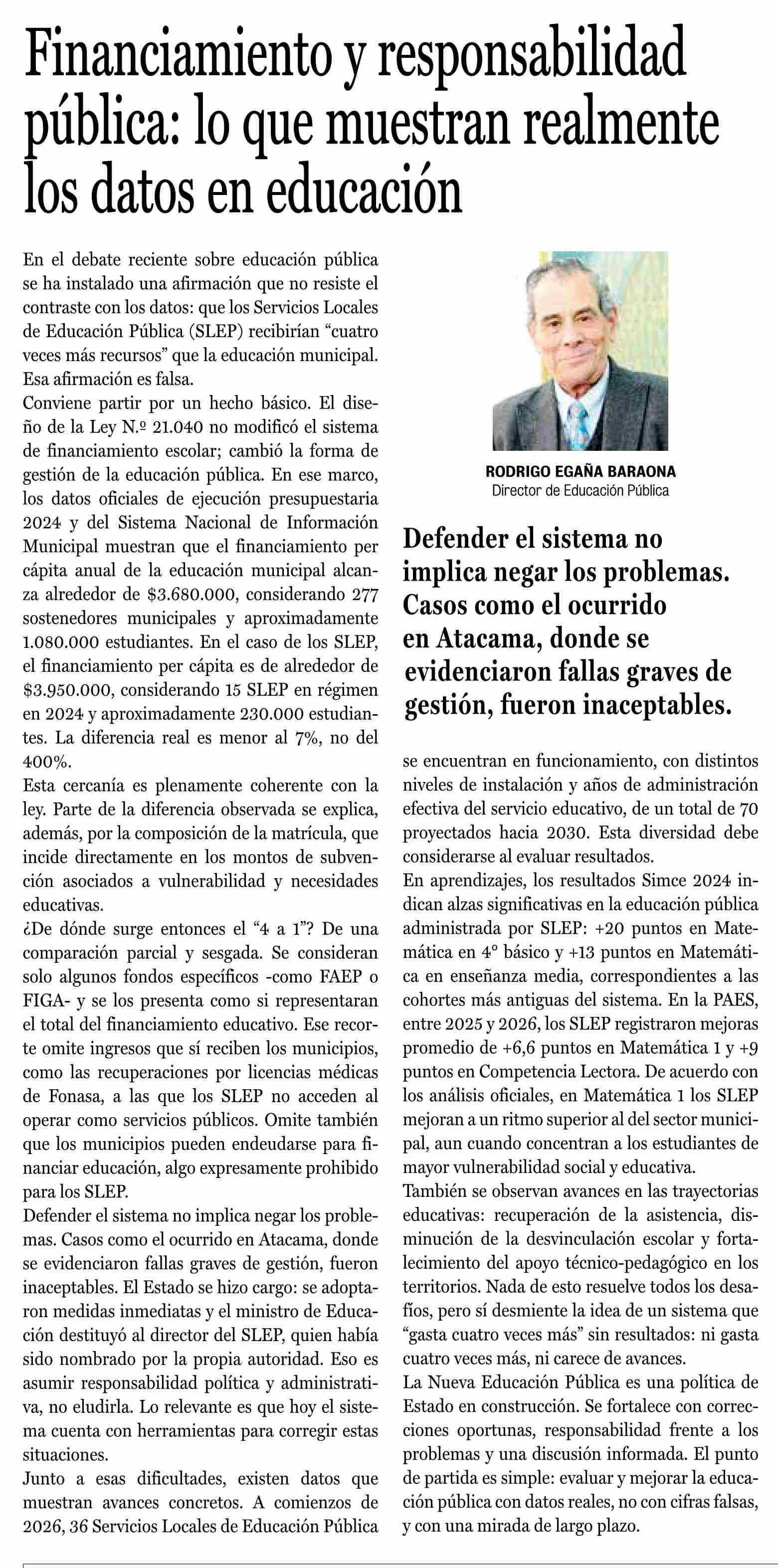 Columnas de Opinión: Financiamiento y responsabilidad pública: lo que muestran realmente los datos en educación
