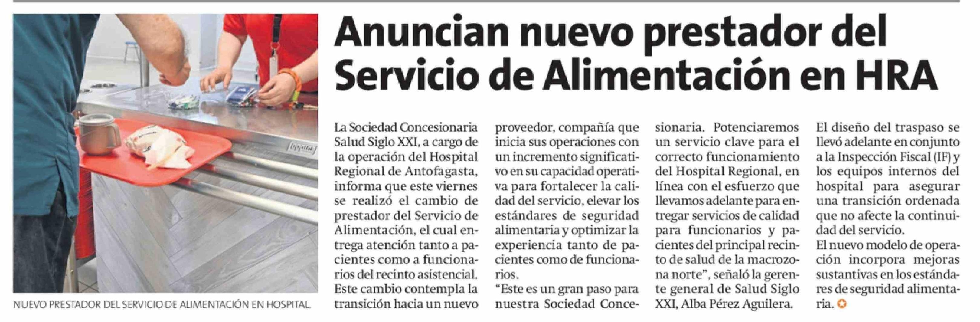 Anuncian nuevo prestador del Servicio de Alimentación en HRA