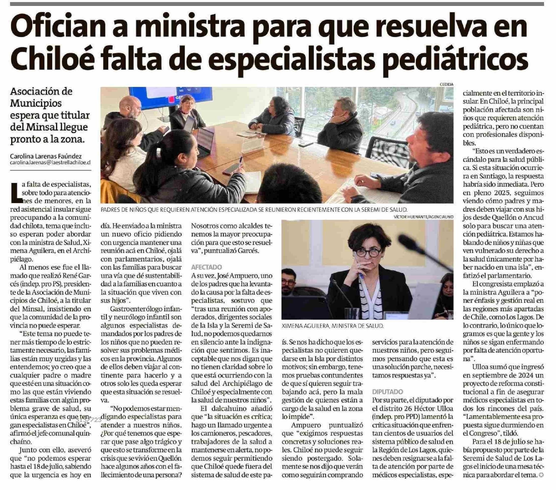 Ofician a ministra para que resuelva en Chiloé falta de especialistas pediátricos
