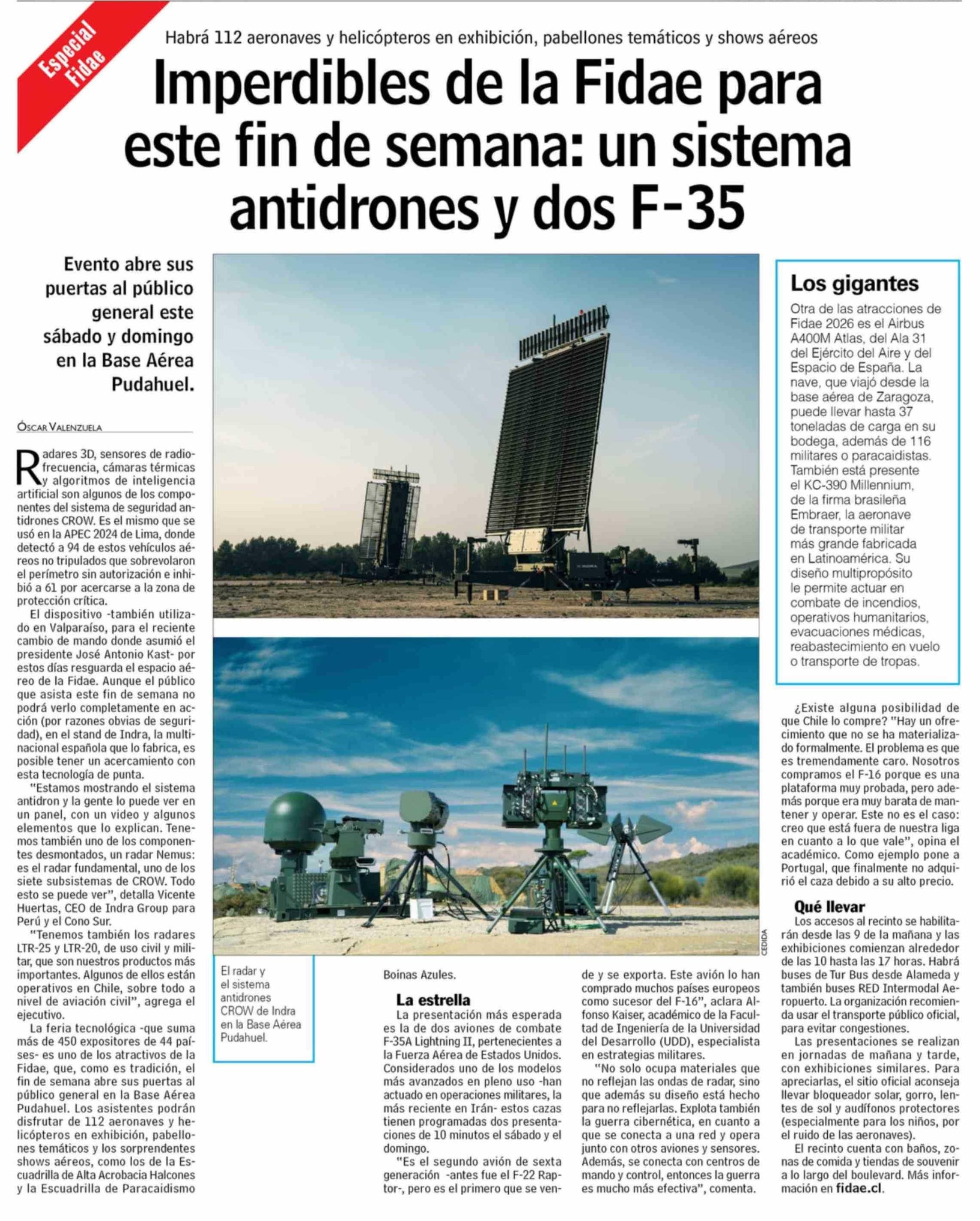 Imperdibles de la Fidae para este fin de semana: un sistema antidrones y dos F-35