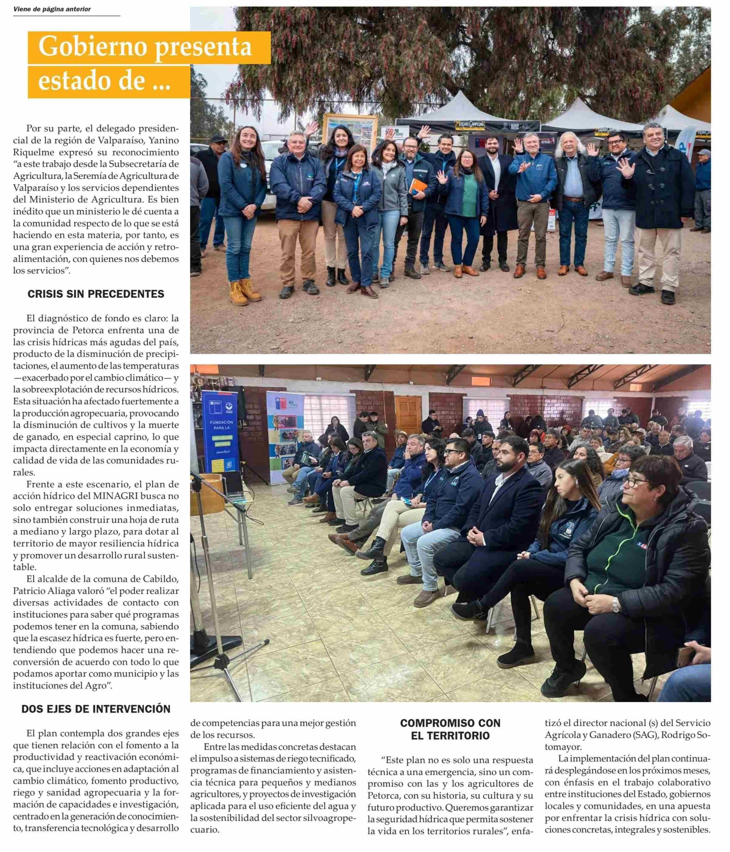 Gobierno presenta estado de avance del plan de acción hídrico para enfrentar la sequía en la Provincia de Petorca