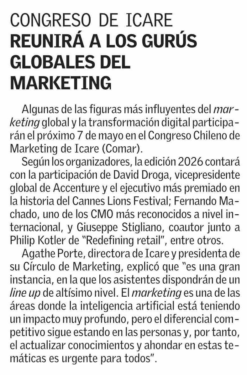 CONGRESO DE ICARE REUNIRÁ A LOS GURÚS GLOBALES DEL MARKETING