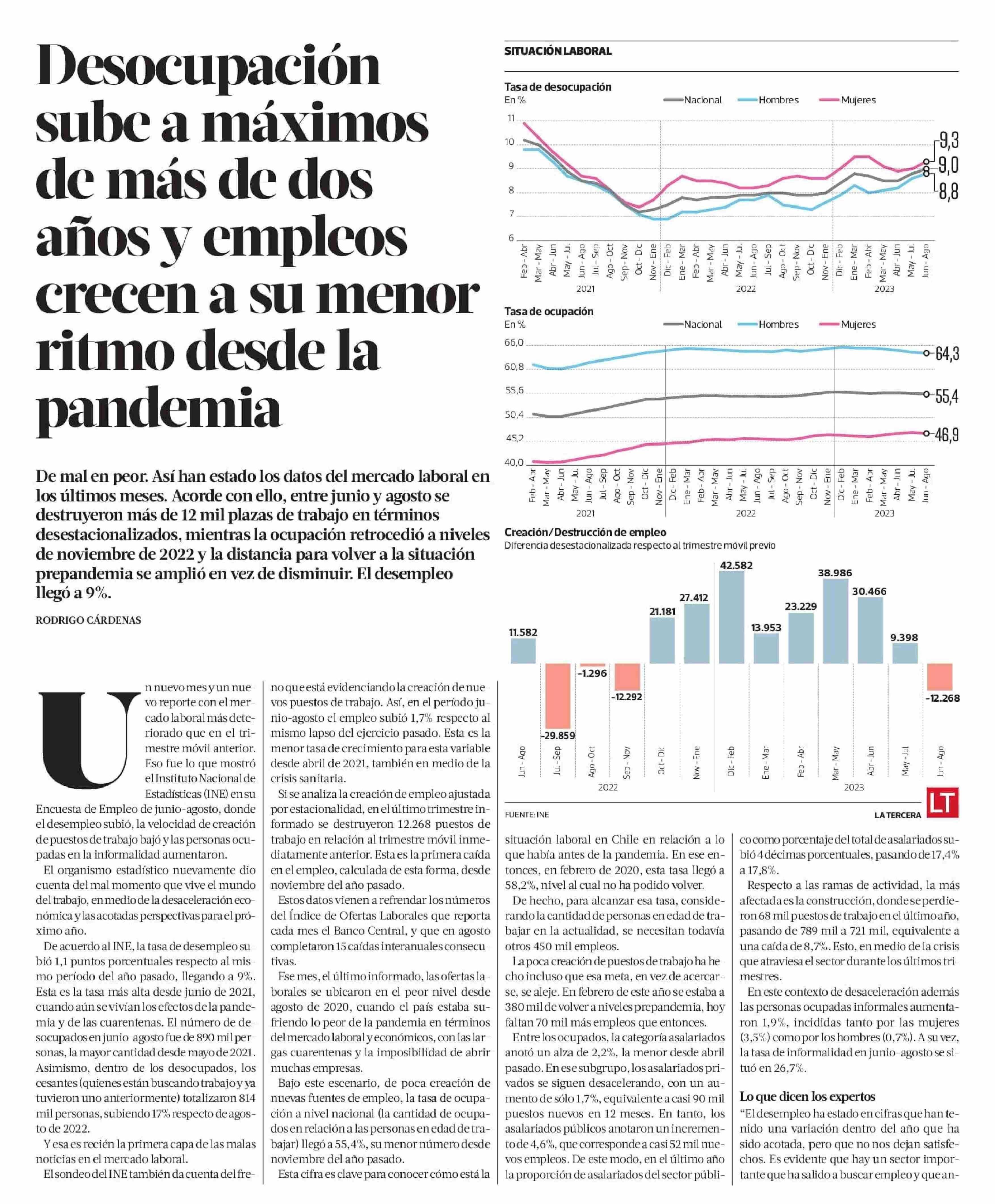 Desocupación sube a máximos de más de dos años y empleos crecen a su menor ritmo desde la pandemia