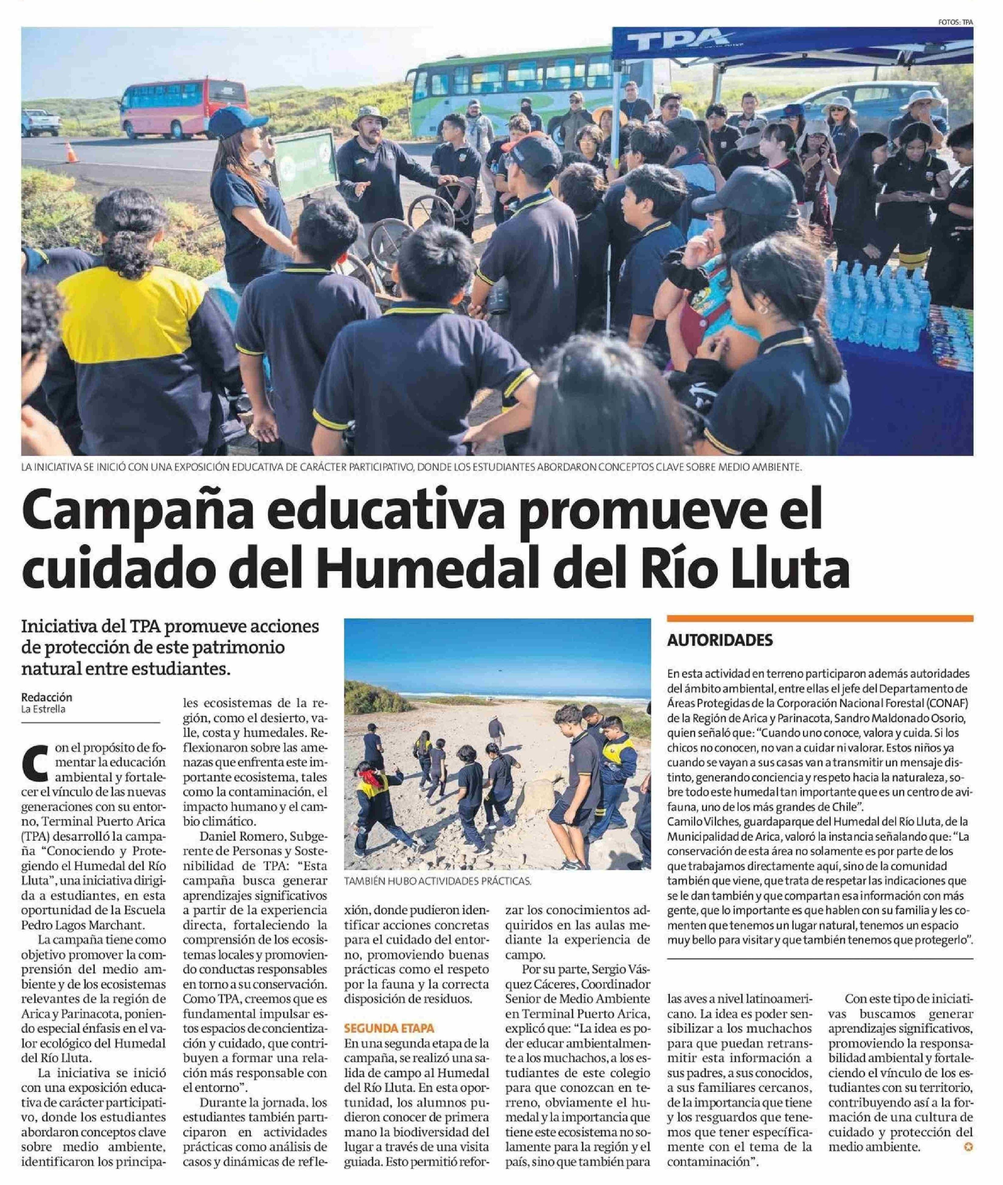 Campaña educativa promueve el cuidado del Humedal del Río Lluta