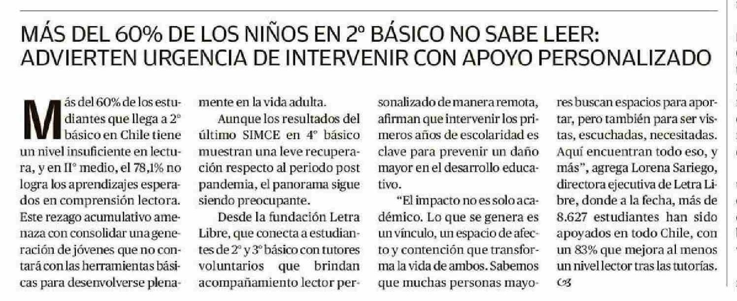 MÁS DEL 60% DE LOS NIÑOS EN 2º BÁSICO NO SABE LEER: ADVIERTEN URGENCIA DE INTERVENIR CON APOYO PERSONALIZADO