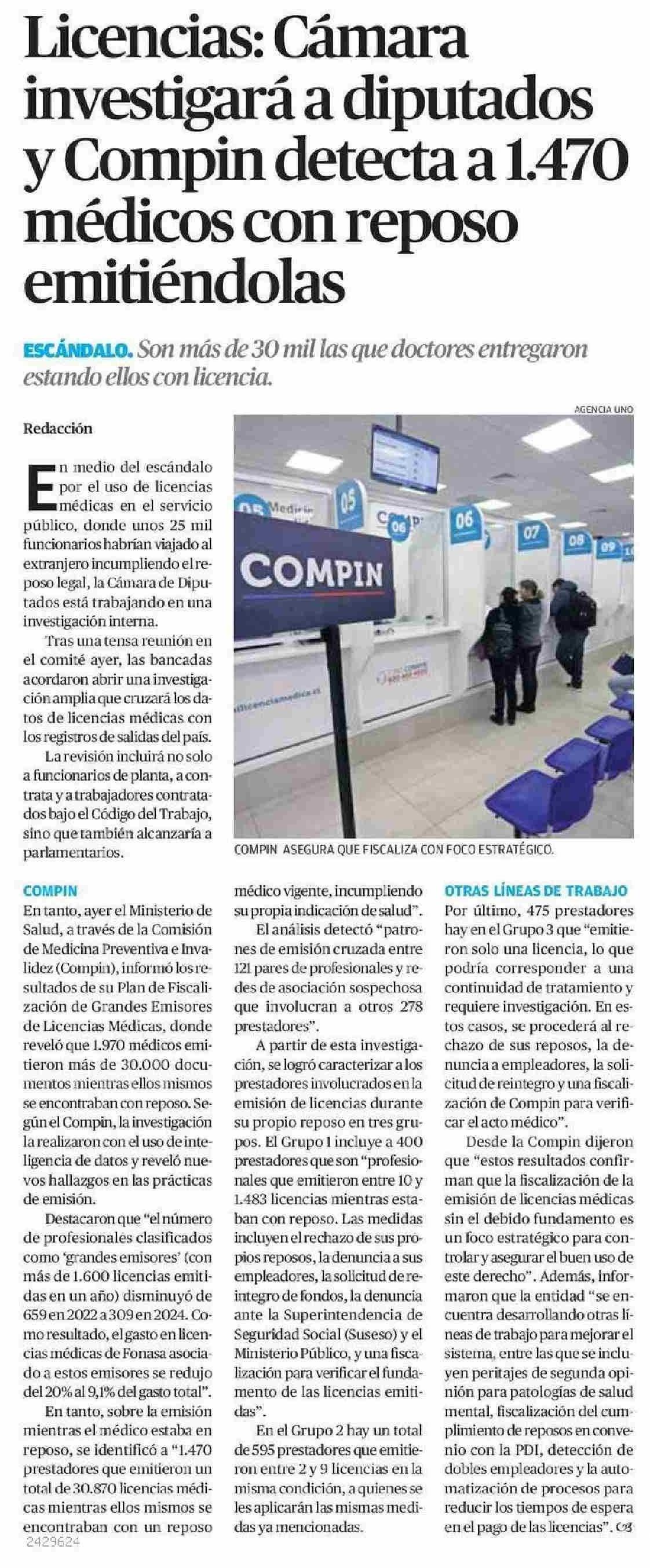 Licencias: Cámara investigará a diputados y Compin detecta a 1.470 médicos con reposo emitiéndolas