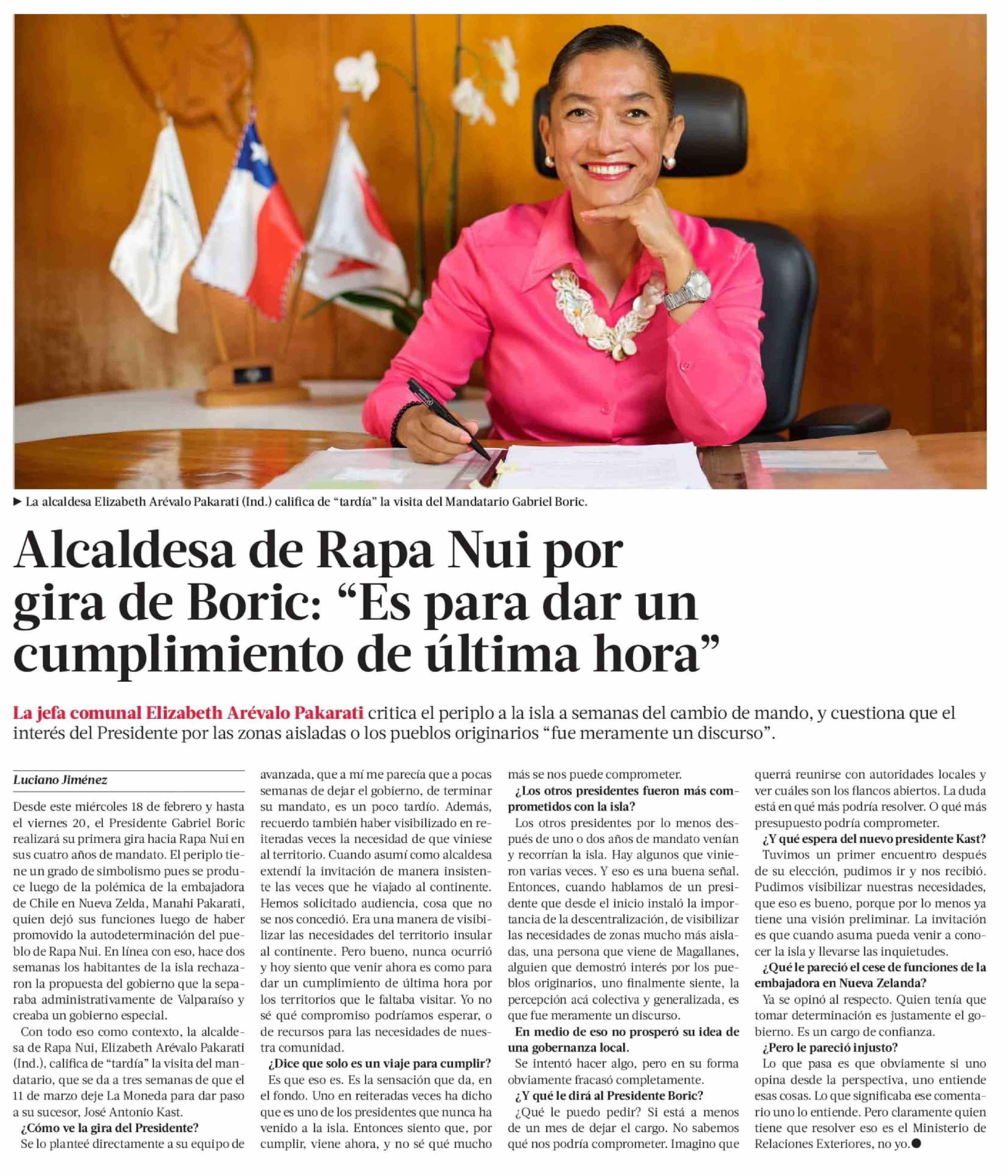 Alcaldesa de Rapa Nui por gira de Boric: "Es para dar un cumplimiento de última hora"
