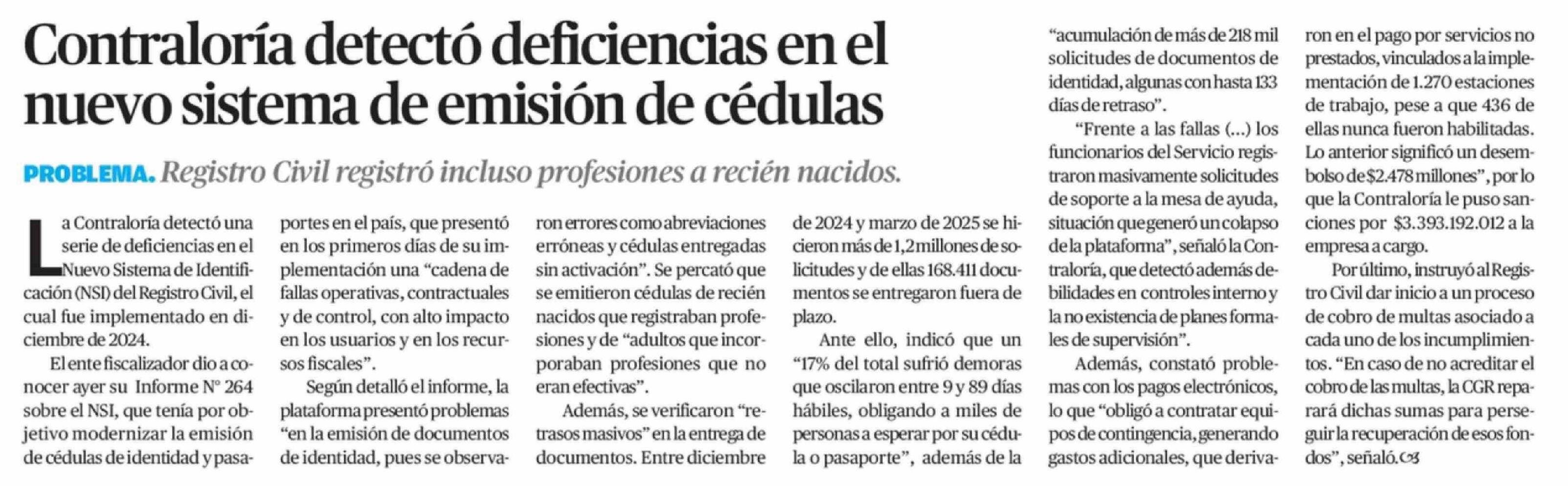 Contraloría detectó deficiencias en el nuevo sistema de emisión de cédulas