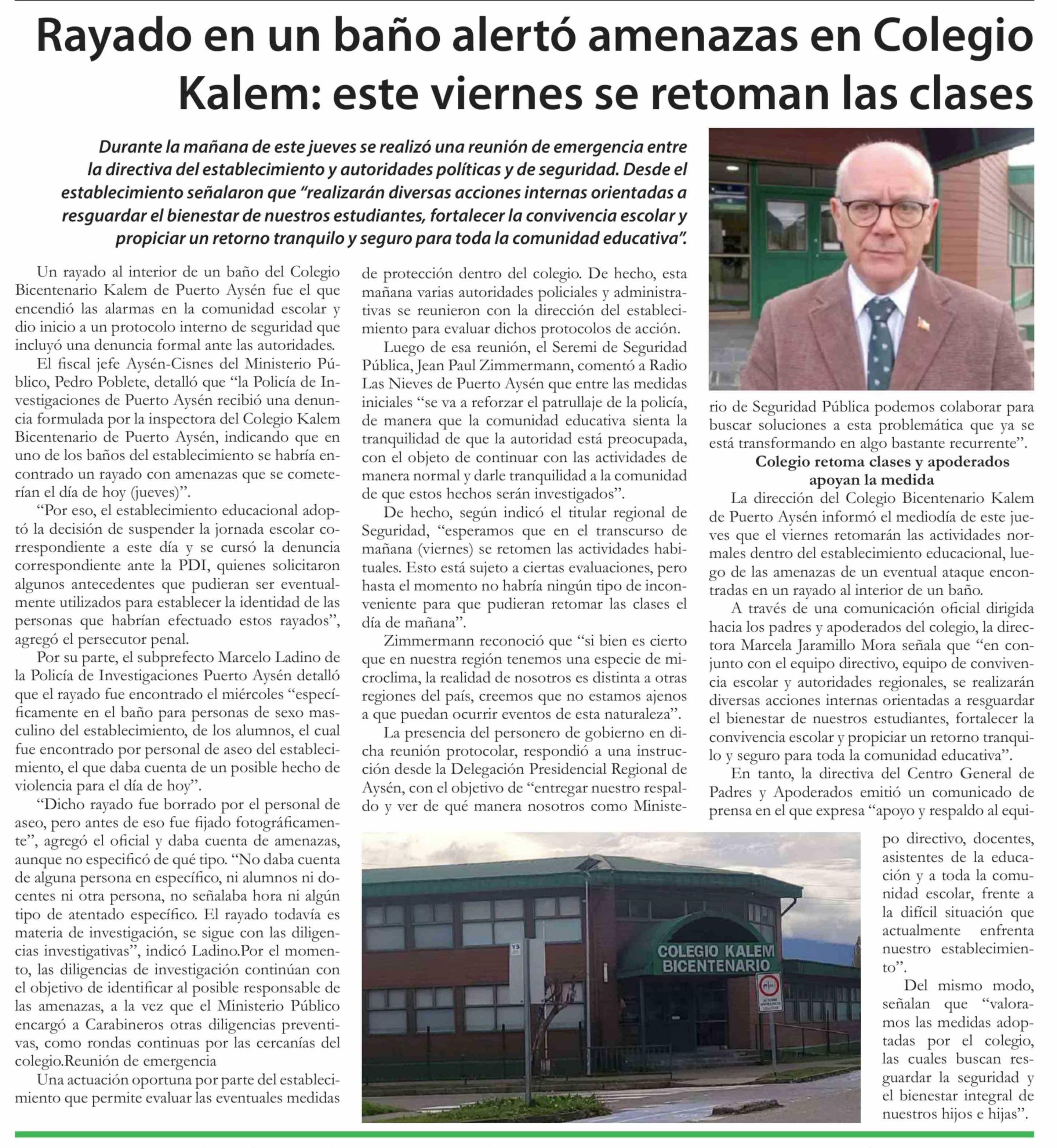 Rayado en un baño alertó amenazas en Colegio Kalem: este viernes se retoman las clases