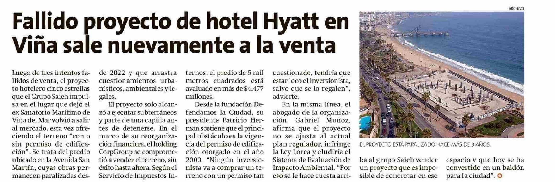 Fallido proyecto de hotel Hyatt en Viña sale nuevamente a la venta