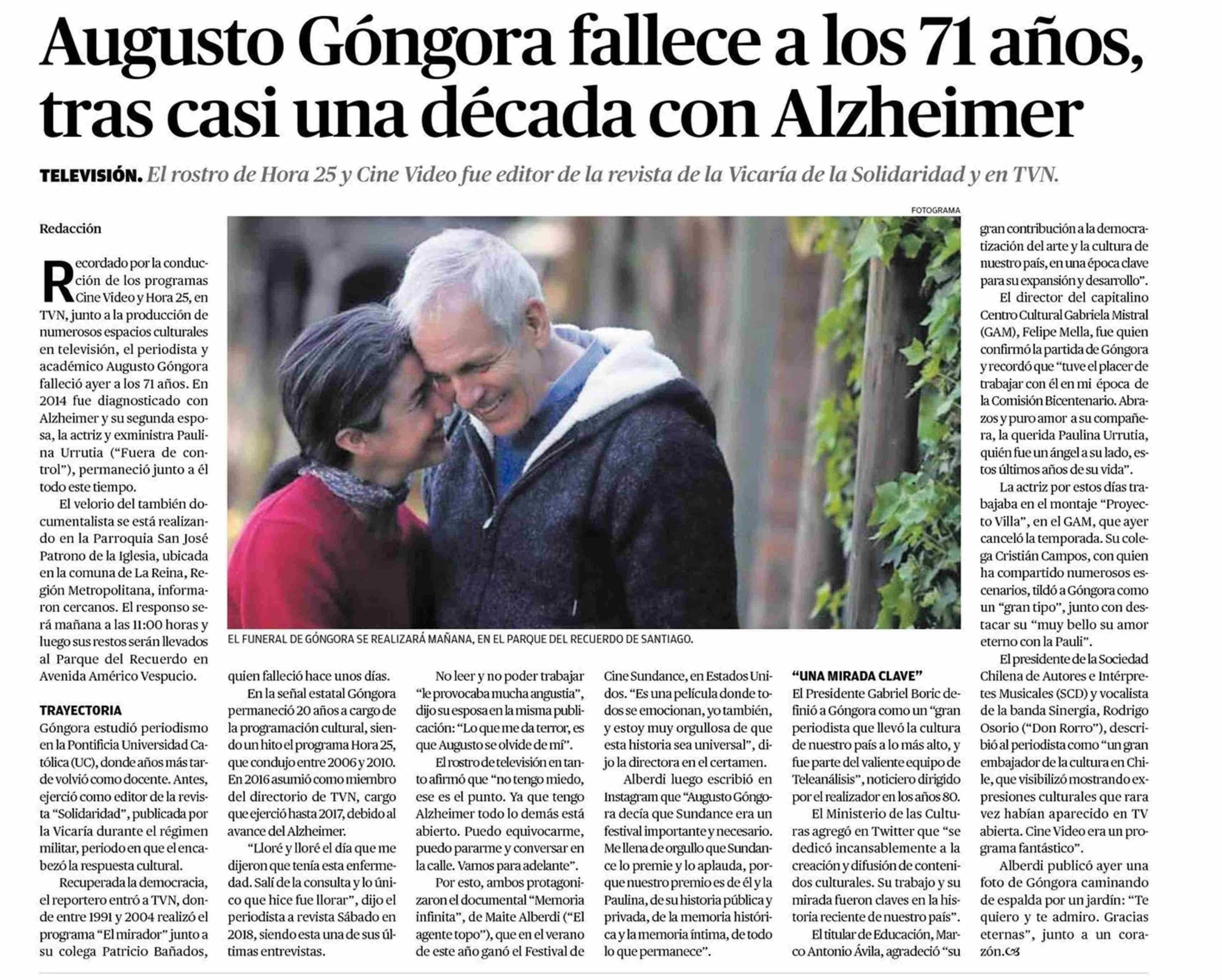 Augusto Góngora fallece a los 71 años, tras casi una década con Alzheimer