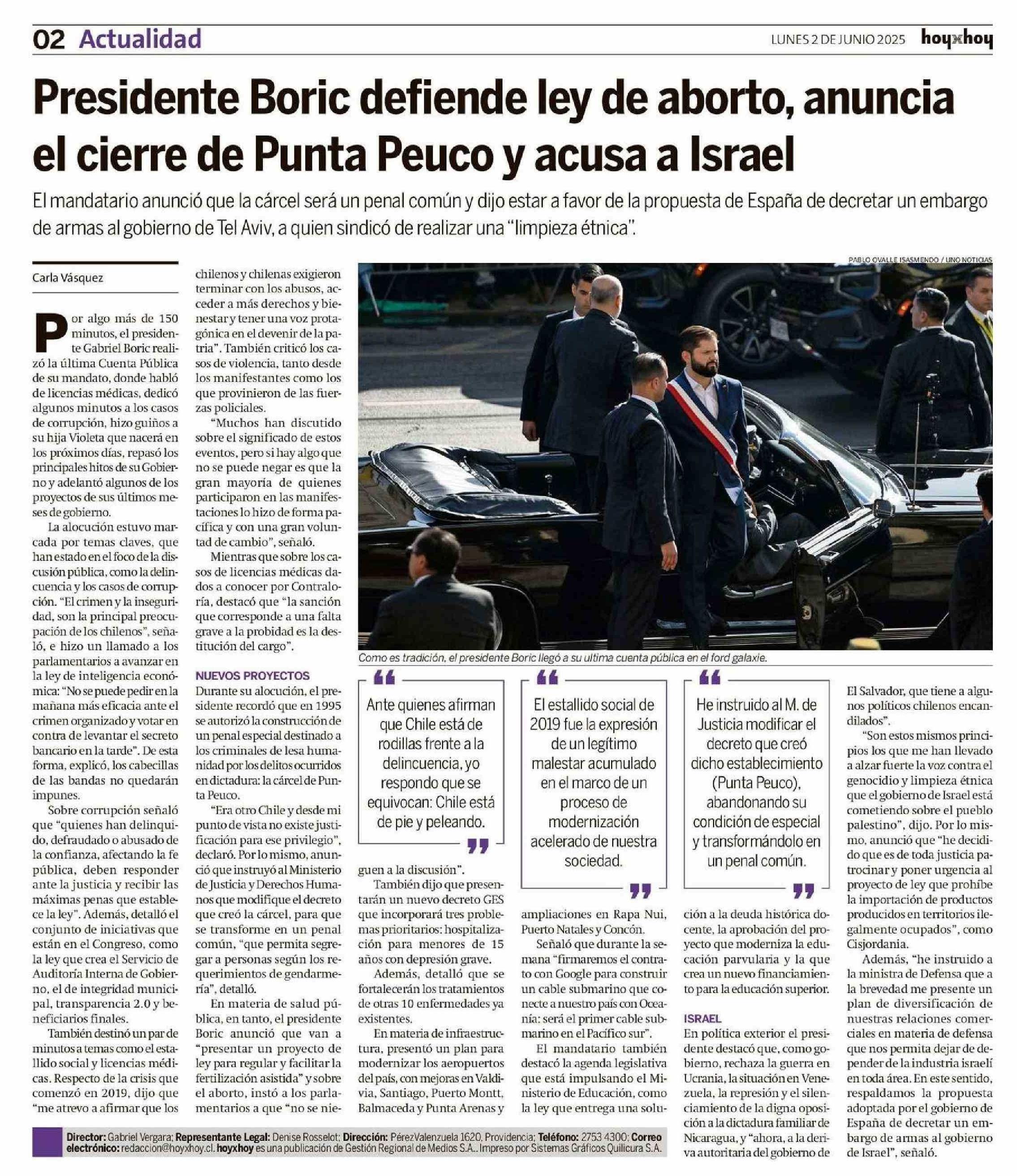 Presidente Boric defiende ley de aborto, anuncia el cierre de Punta Peuco y acusa a Israel