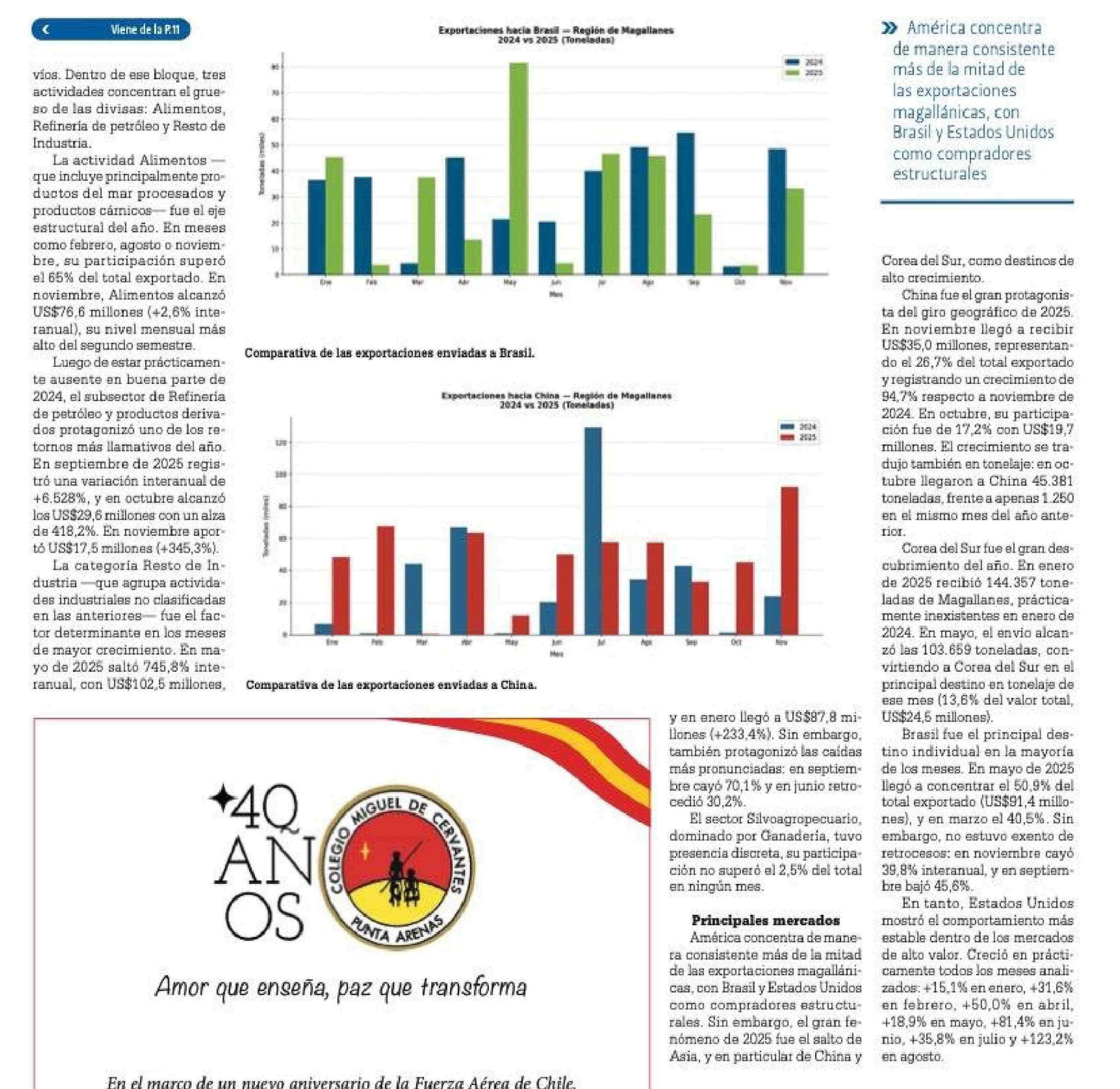 | Título: | Exportaciones de Magallanes superaron los 1.458 millones de dólares en 2025 con fuerte dependencia del mercado brasileño |